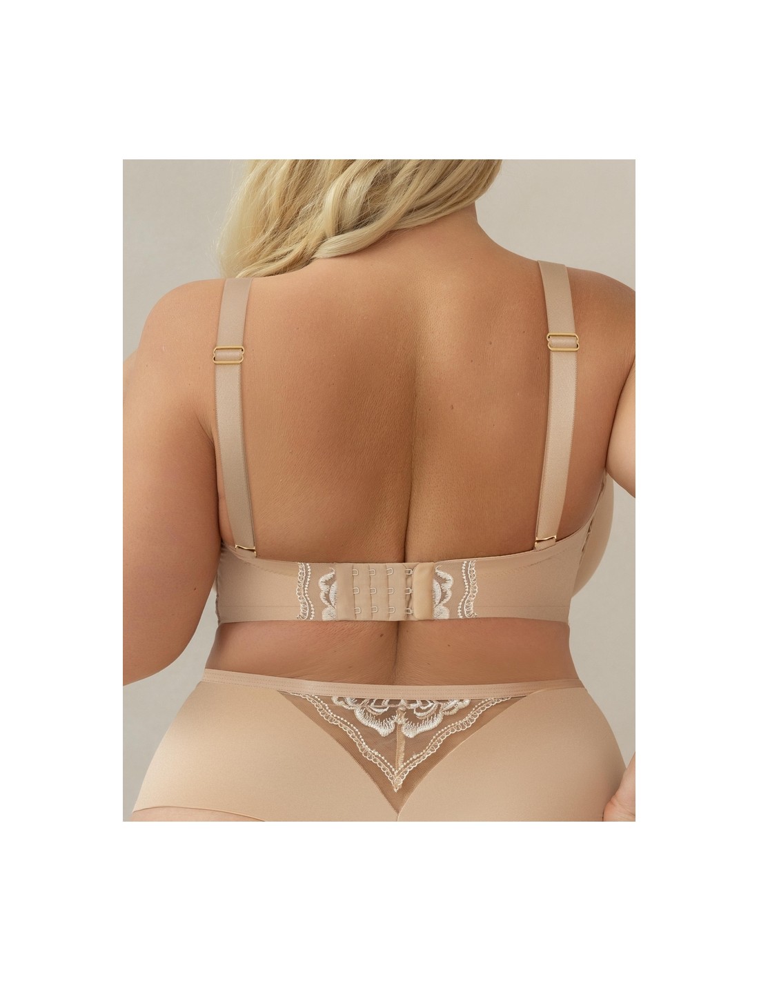 Model pięknie eksponuje górną część biustu, nadając mu pełniejszy kształt. Biustonosz balkonette Krisline Dolce mhm posiada specjalnie uformowaną miskę, która unosi biust i zbiera go po bokach, co sprawia, że piersi wyglądają na większe i pełniejsze zapewniają komfort noszenia oraz możliwość dopasowania do różnych stylizacji. Wykonany z mieszanki materiałów: 80% poliamid, 10% elastan, 5% bawełna, 5% poliester, co gwarantuje miękkość, elastyczność i oddychalność. Biustonosz doskonale sprawdzi się na co dzień oraz przy wyjątkowych okazjach, podkreślając linię dekoltu.