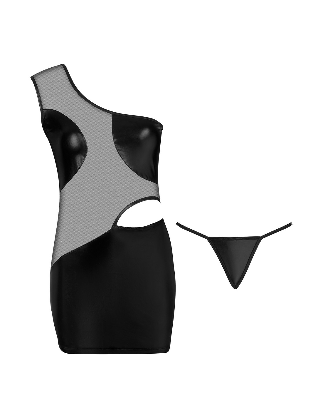 Dodatki w komplecie: W zestawie z sukienką znajdują się stringi, które doskonale uzupełniają całość i podkreślają zmysłowy charakter kreacji.