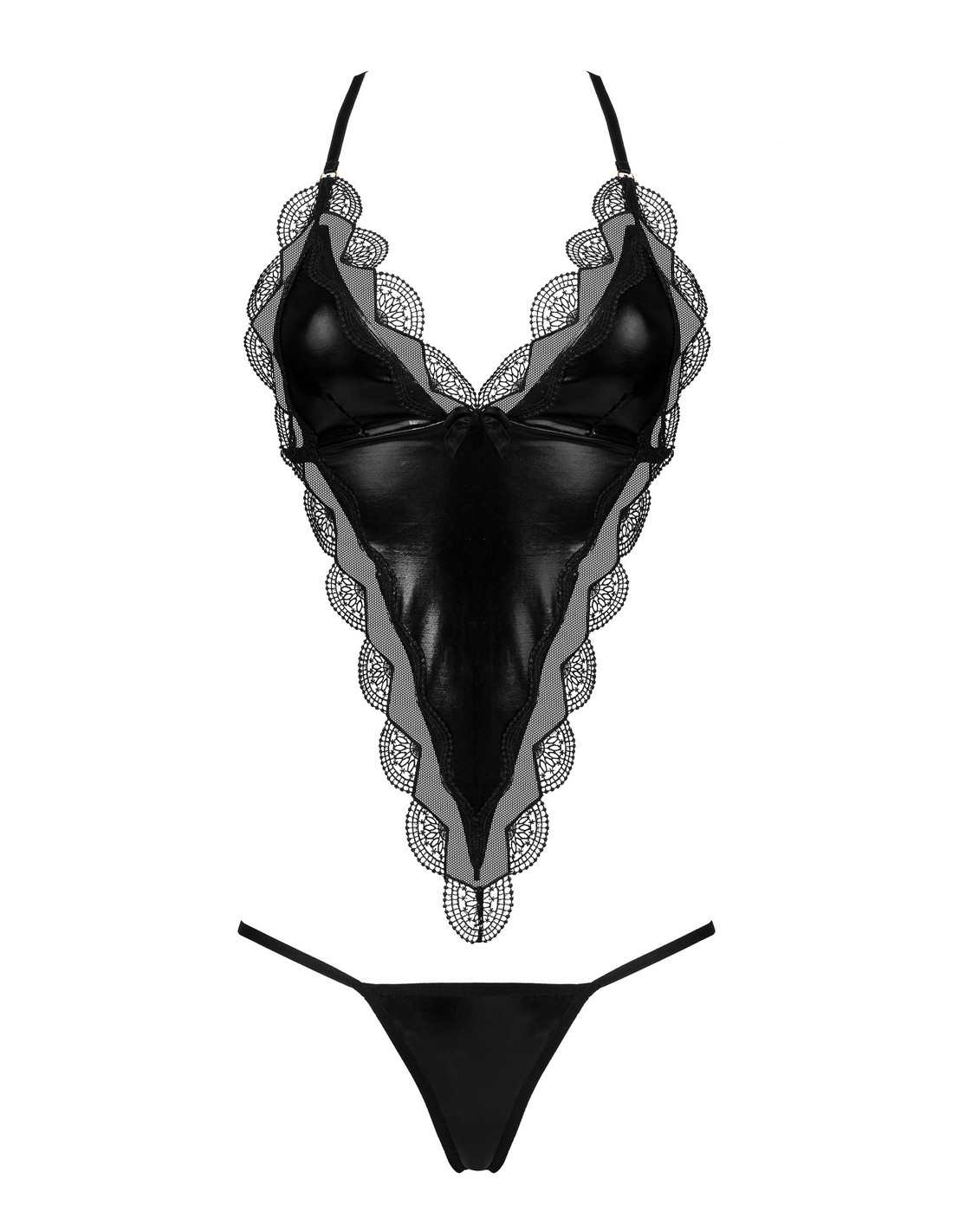 • Materiał: Zestaw wykonany z materiału "wetlook" oraz delikatnej koronki, co nadaje mu luksusowy i sexowny wygląd.