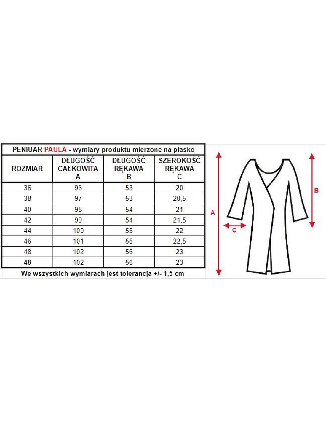 Dostępne kolory peniuaru Paula: