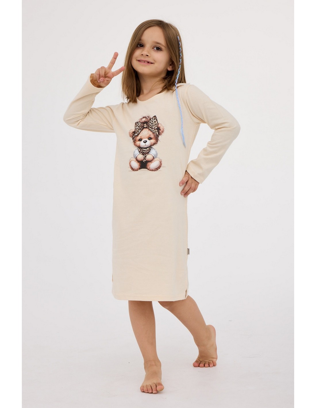 Koszula nocna dziewczęca CORNETTE PANTHER 2 258/197 to bardzo dobre połączenie wygody, stylu i młodzieżowego charakteru. Wykonana w całości z wysokogatunkowej, 100% bawełny, zapewnia naturalną przewiewność i komfort przez całą noc. Model z długim rękawem idealnie sprawdza się w chłodniejsze wieczory. Przód koszuli zdobi dynamiczny, kolorowy nadruk z motywem pantery, który podkreśla energiczny styl młodych dziewczyn. Półokrągły dół koszulki dodaje lekkości i nowoczesnego wyglądu.