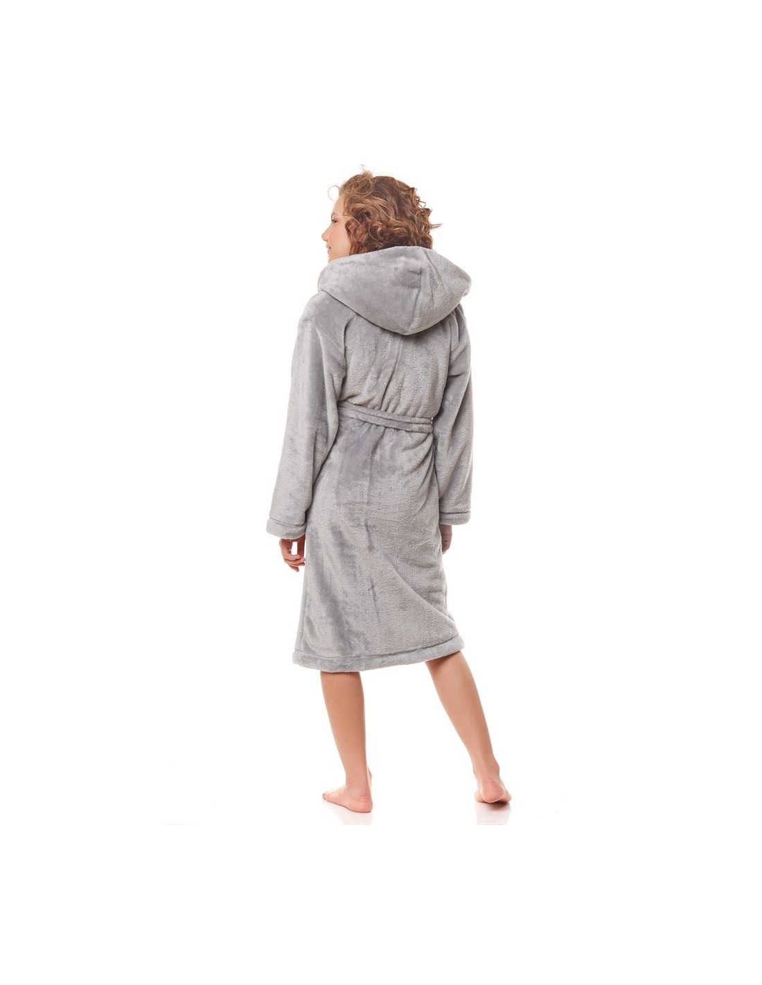 Szlafrok dziecięcy z kapturem, z mięciutkiej, bardzo miłej w dotyku tkaniny typu soft. Wiązany w pasie.