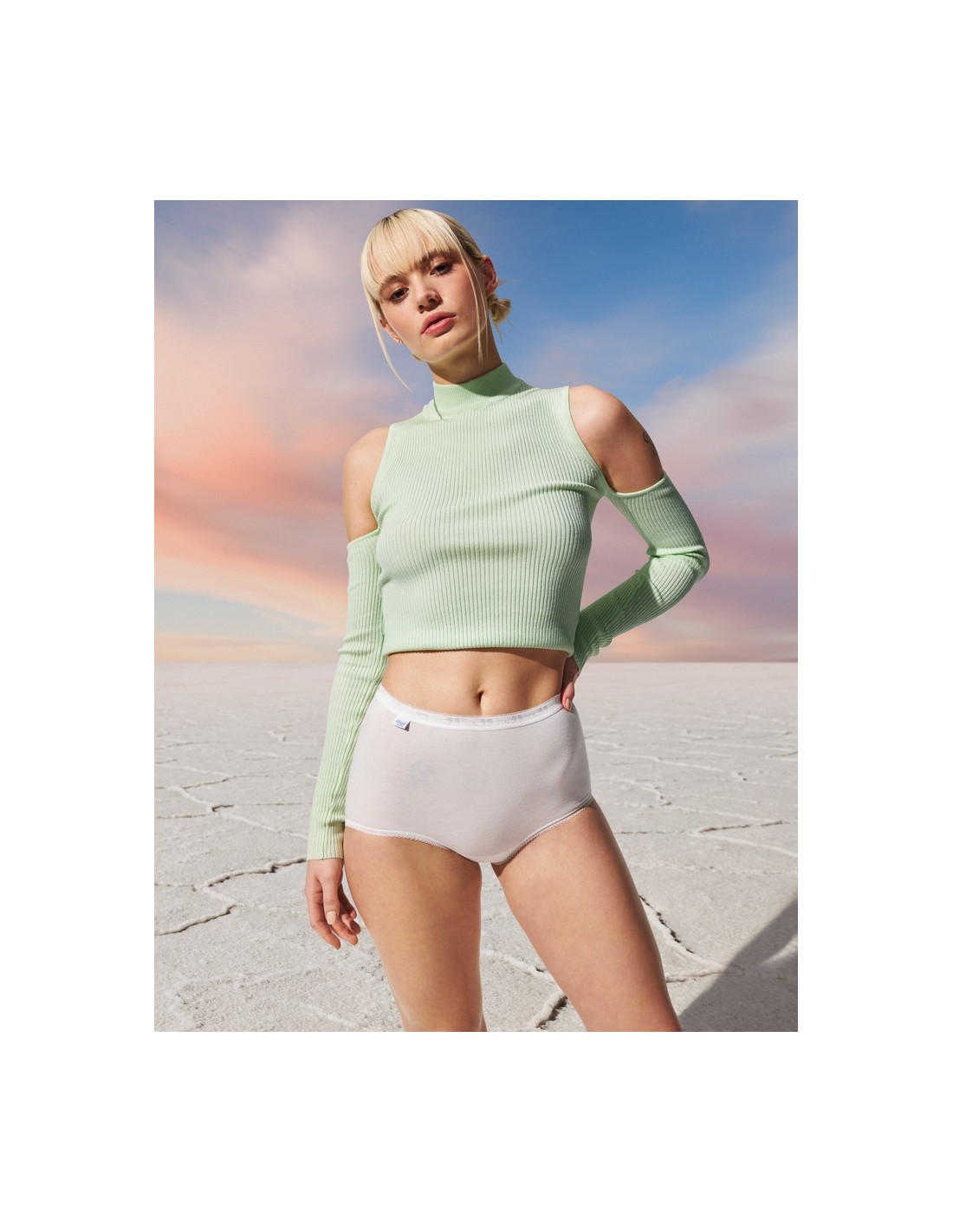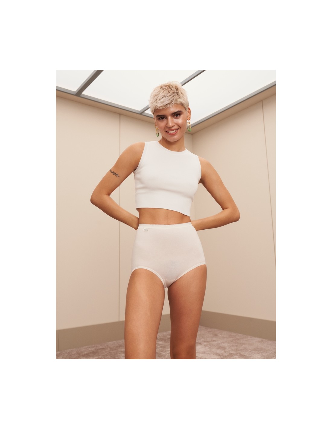 Traditional Sloggi Briefs from TRIUMPH, made of cotton with a touch of Lycra, provide greater flexibility. They have a classic cut with a high waist and low thigh cutouts.