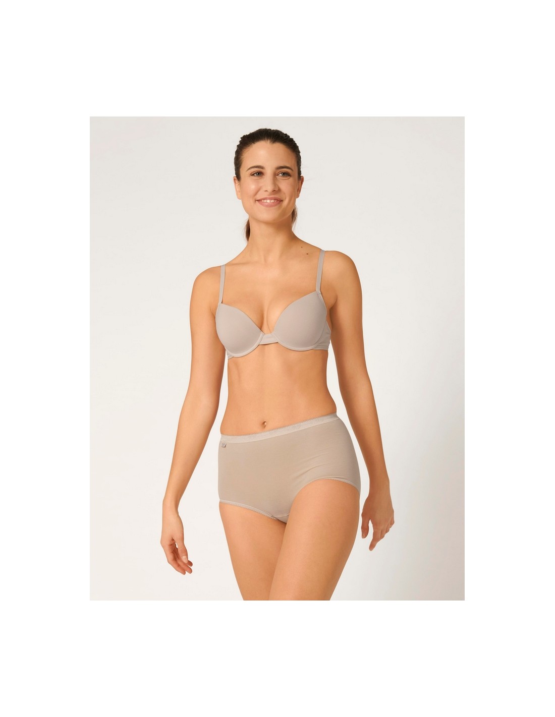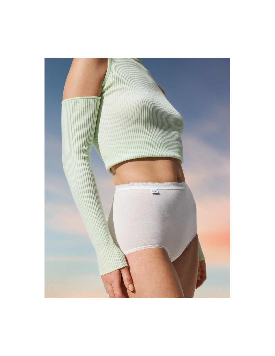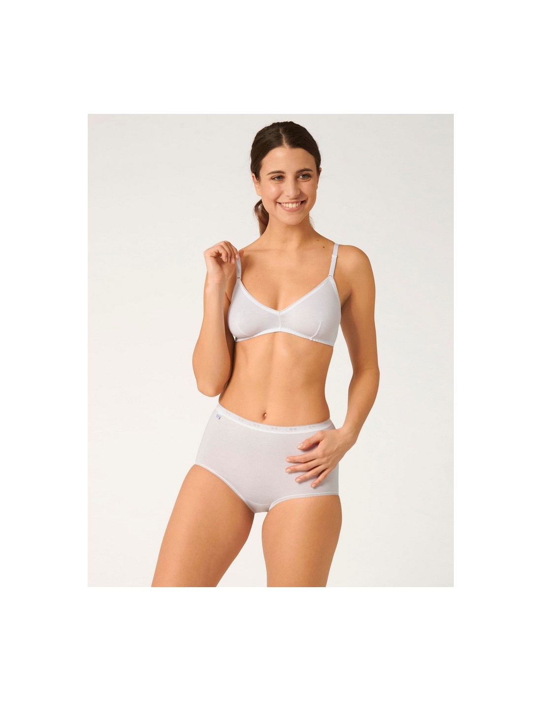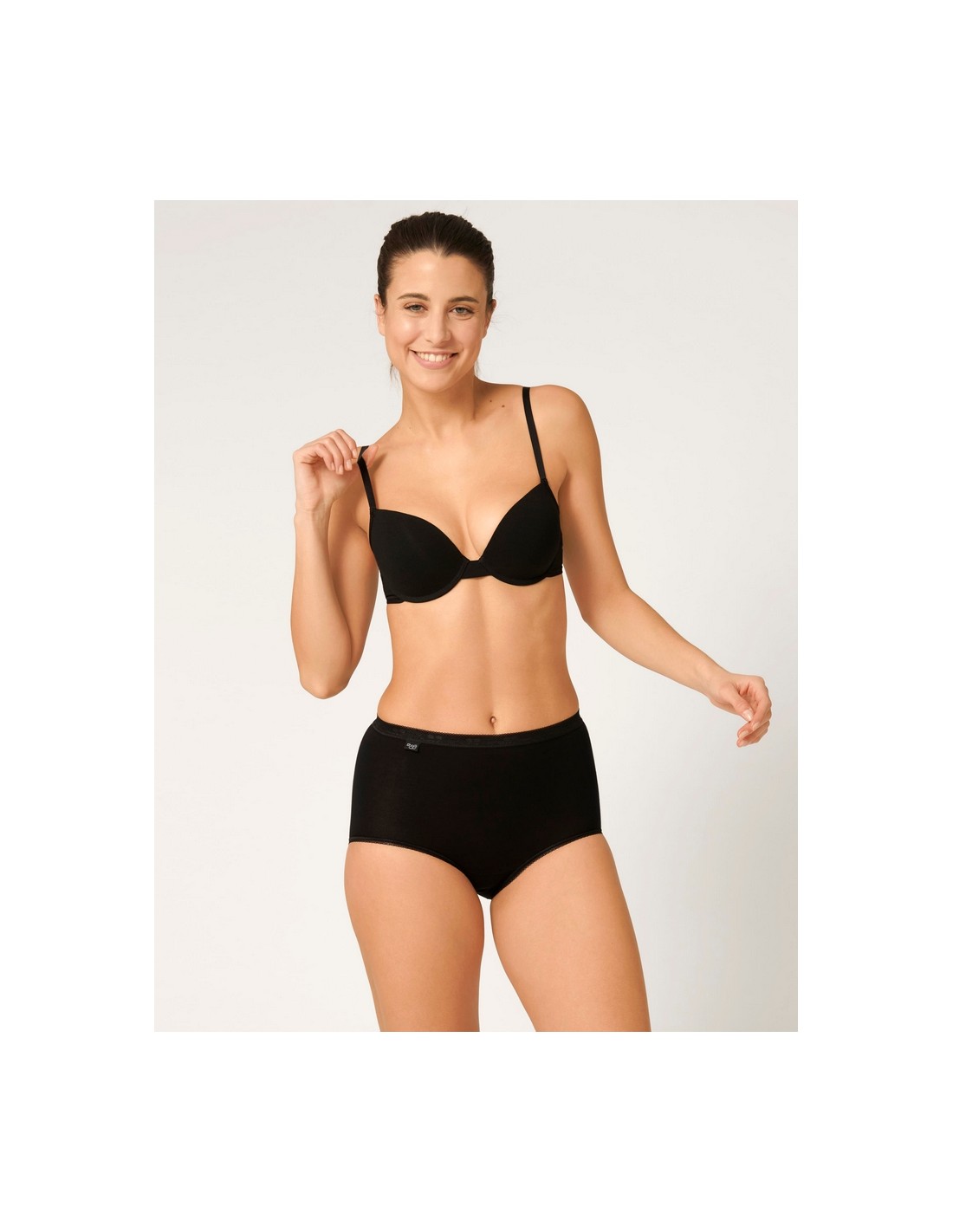 Traditional Sloggi Briefs from TRIUMPH, made of cotton with a touch of Lycra, provide greater flexibility. They have a classic cut with a high waist and low thigh cutouts. Very soft edges do not stand out under clothes. A comfortable elastic band at the waist ensures a perfect fit and beautifully smoothes the figure. Composition: 95% Cotton, 5% Elastane.