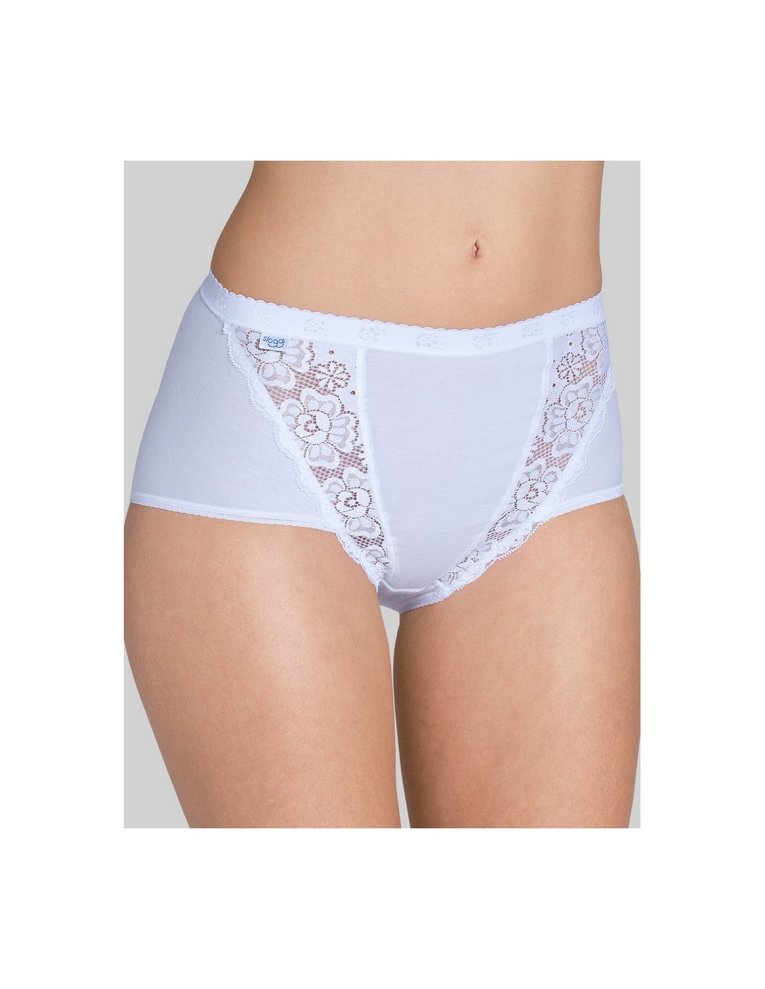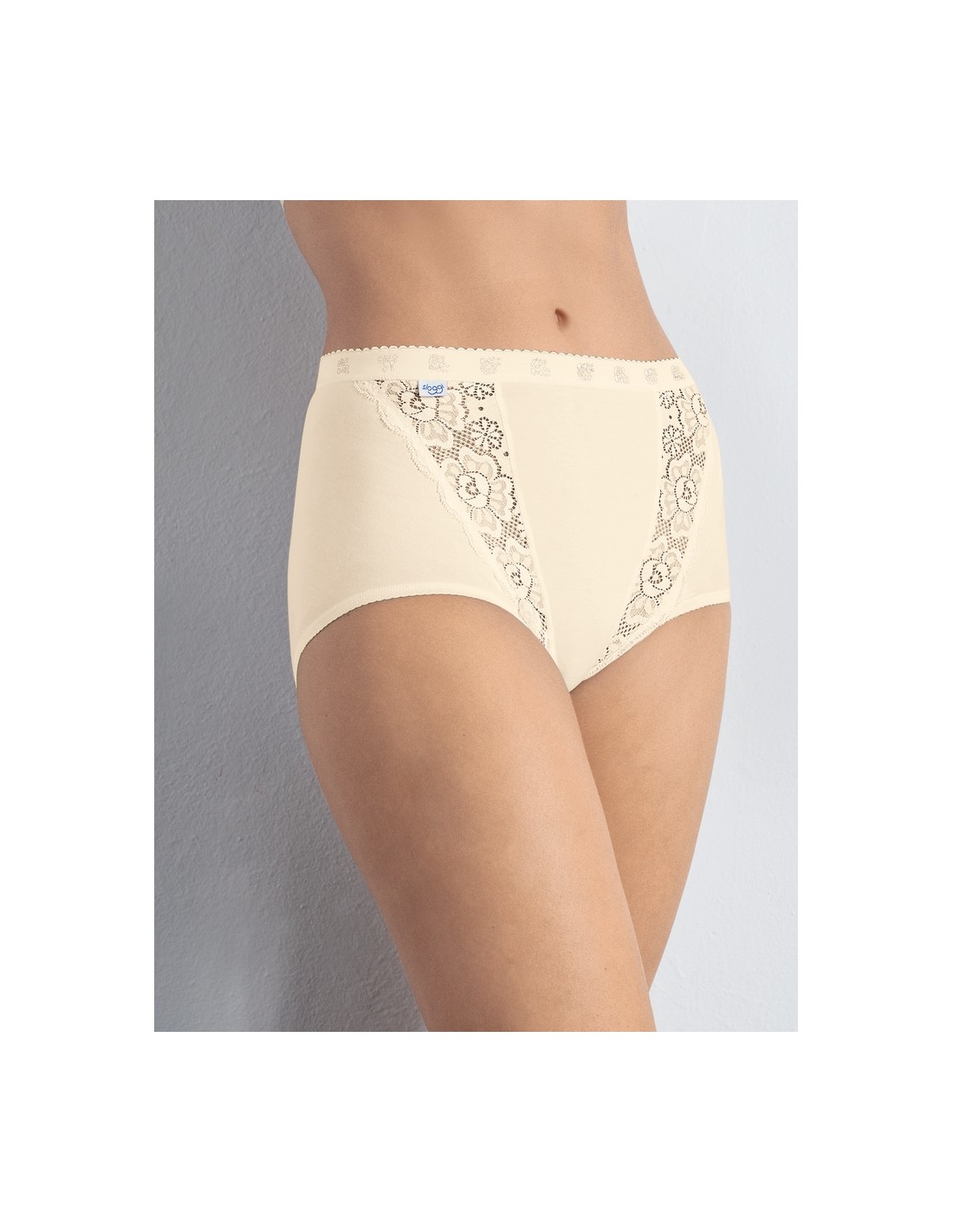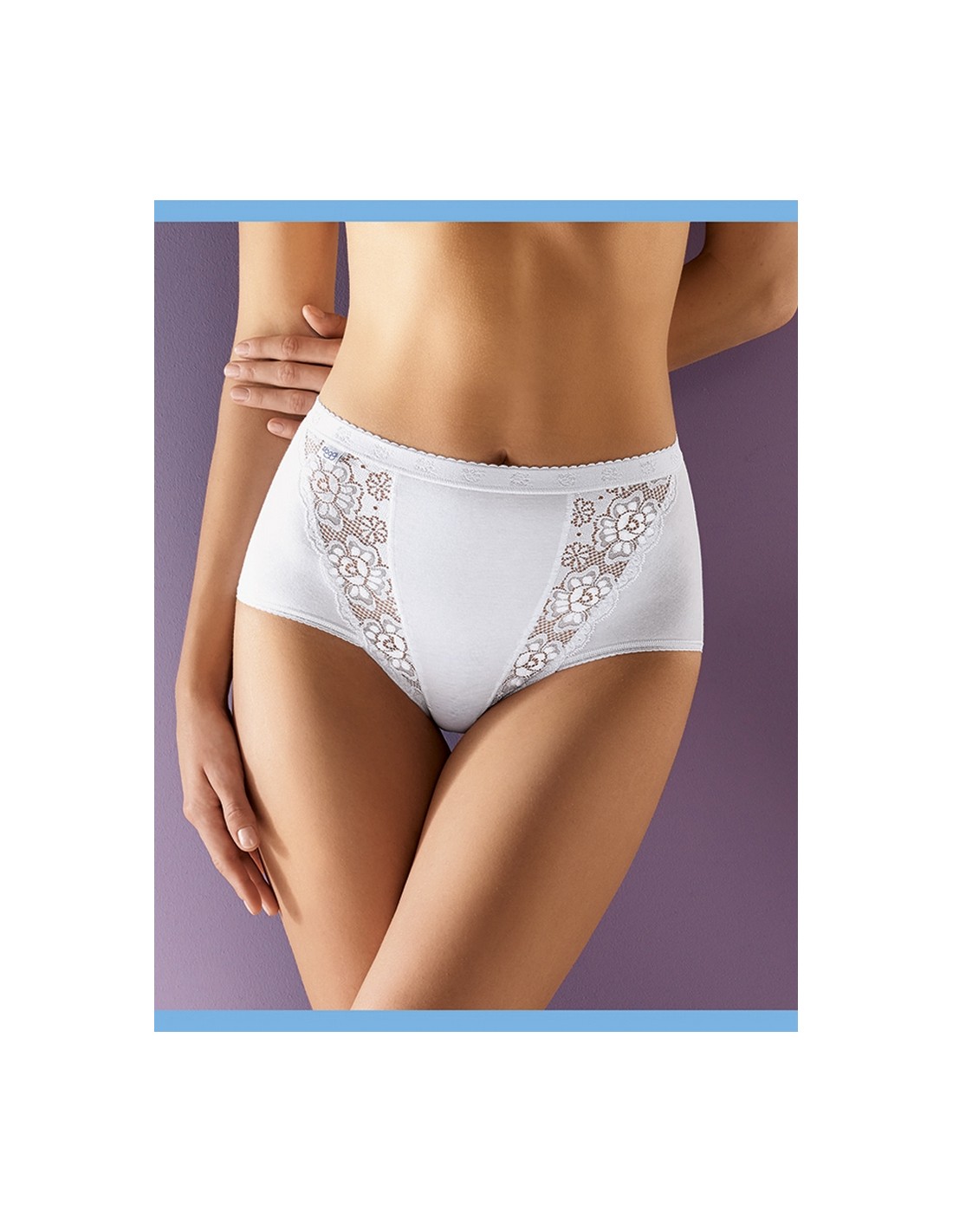 Maxi panties made of soft material, decorated with elastic lace inserts. Their classic design with comfortable, wide sides ensures unrivaled wearing comfort. A stable elastic band at the waist guarantees a perfect fit. The material with a high content of ring spun cotton is extremely soft and comfortable. Composition: 85% Cotton, 10% Polyamide, 5% Elastane.