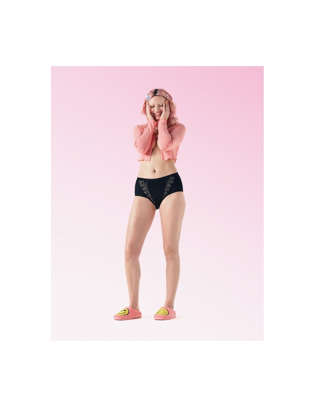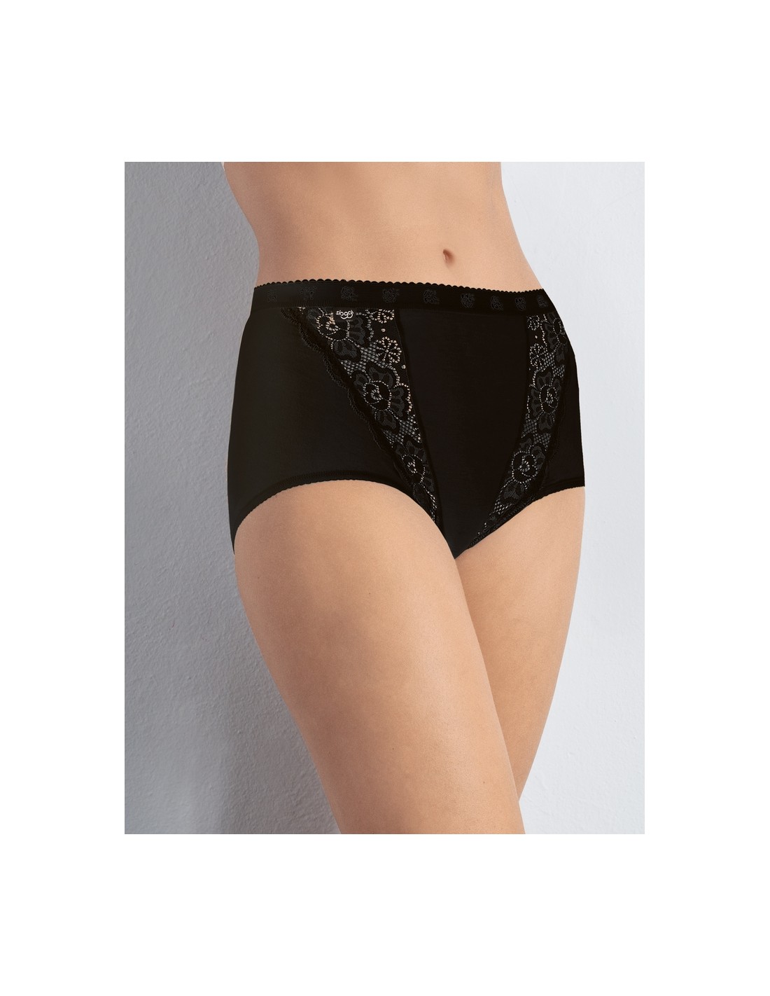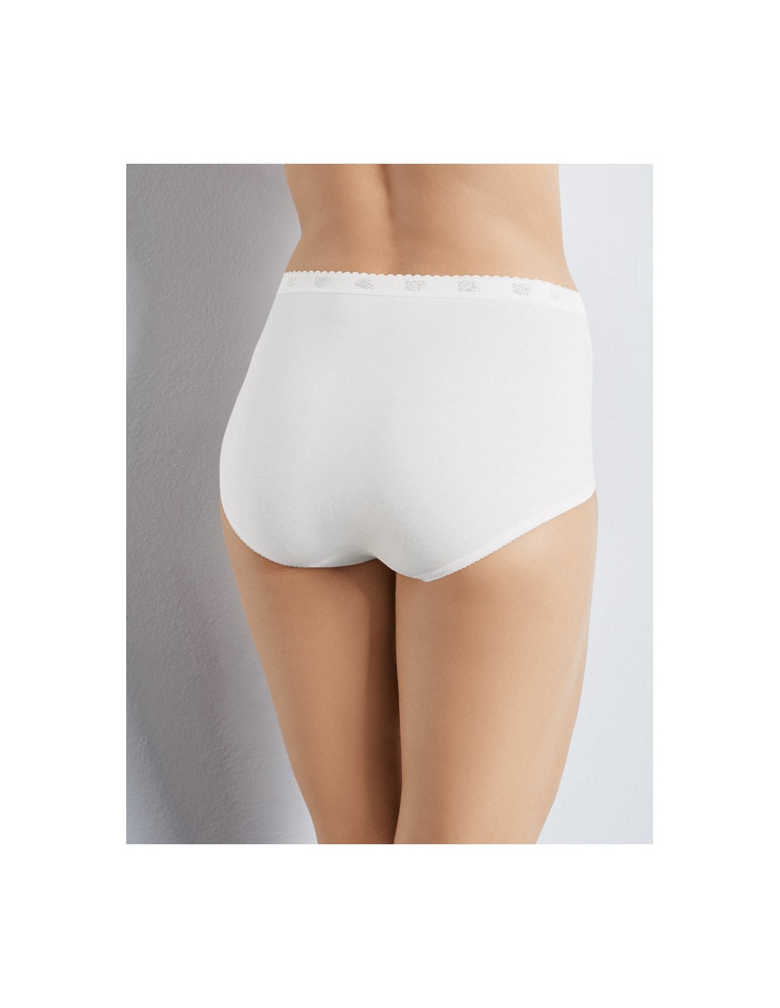 Maxi panties made of soft material, decorated with elastic lace inserts. Their classic design with comfortable, wide sides ensures unrivaled wearing comfort. A stable elastic band at the waist guarantees a perfect fit. The material with a high content of ring spun cotton is extremely soft and comfortable. Composition: 85% Cotton, 10% Polyamide, 5% Elastane.