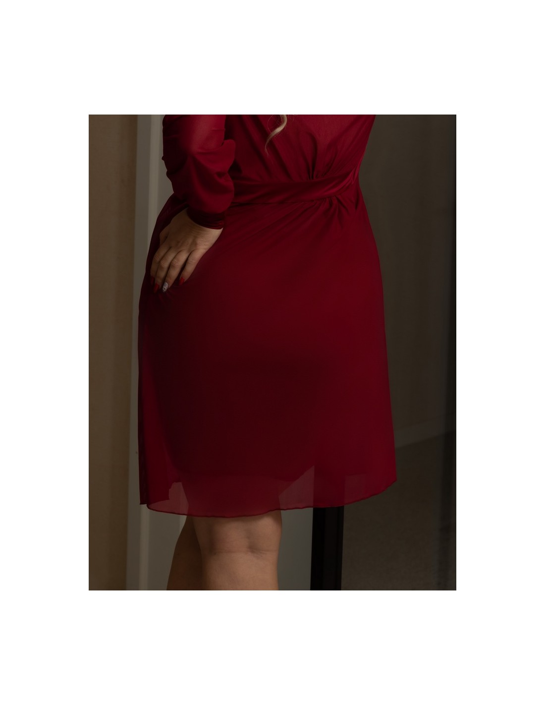 Sensual negligee in beautiful burgundy colors. The dressing gown is the perfect complement to the Rubin T-shirt. This model is made of thin, flowing fabric. There is a wider belt at the waist and the sleeves are finished with wide cuffs. Composition: 80% Polyamide, 10% Elastane, 5% Cotton, 5% Polyester.