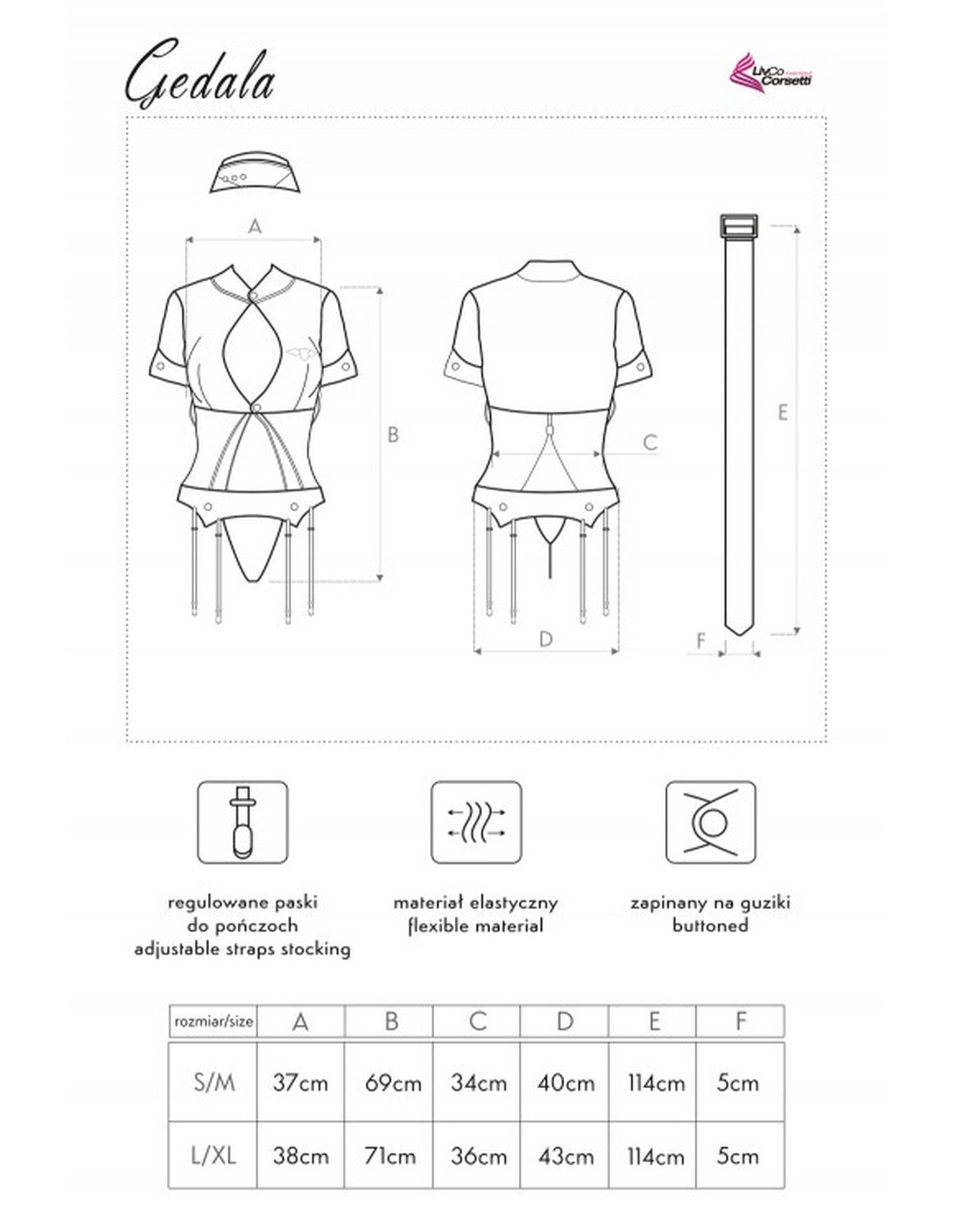 The Gedala costume is made from soft and stretchy material, ensuring a comfortable fit that contours to your body. Delicate details such as golden buttons and distinctive patches lend authenticity and elegance to the ensemble. The short-sleeved bodysuit with a deep V-neck beautifully accentuates the bust, while the included stewardess cap completes the look, creating a cohesive and enticing set. It's perfect for bold bedroom play.