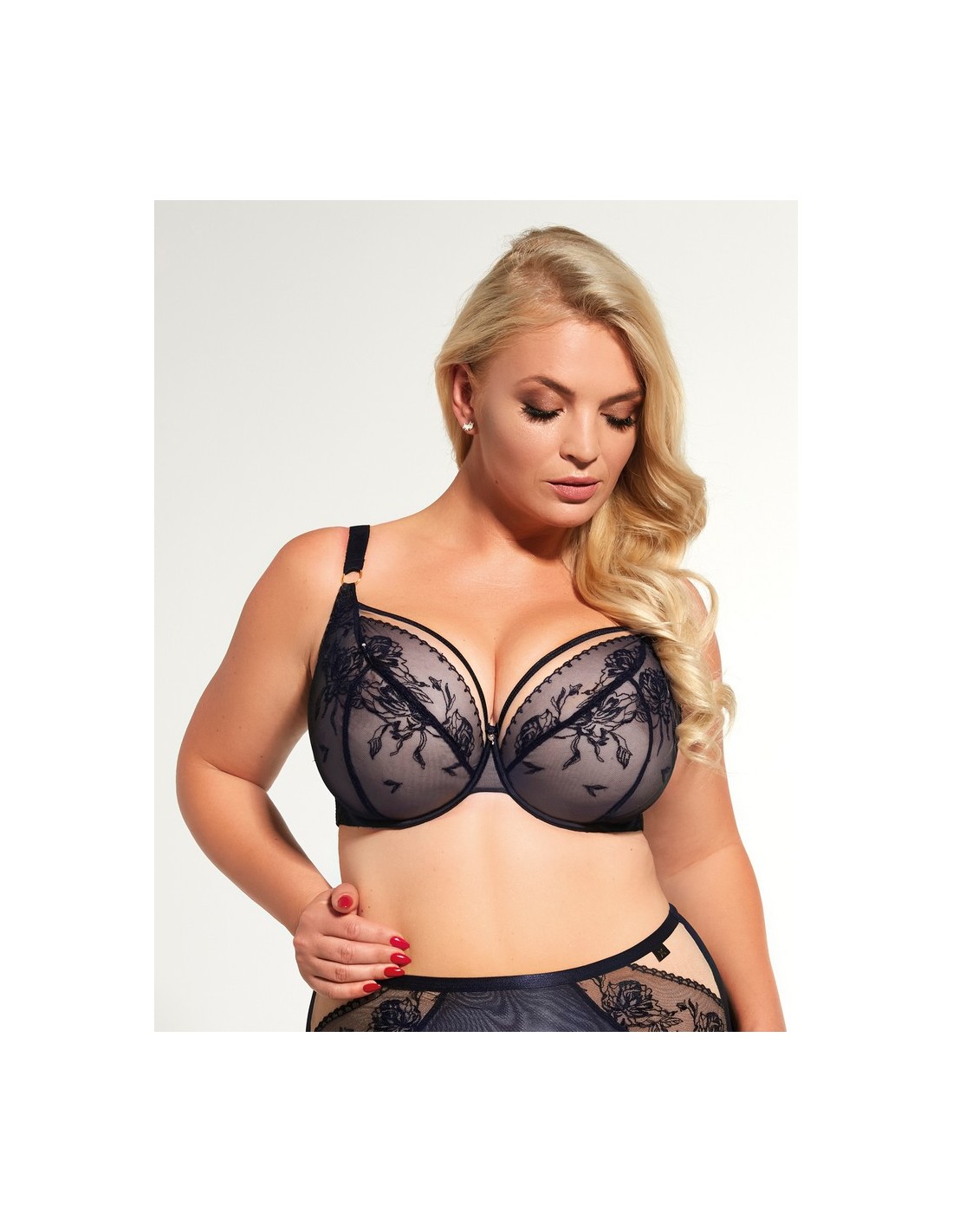 The Chloe bra with soft cups sensationally collects the bust inside, lifting it nicely and modeling it. High-quality fabric decorated with beautiful floral embroidery.