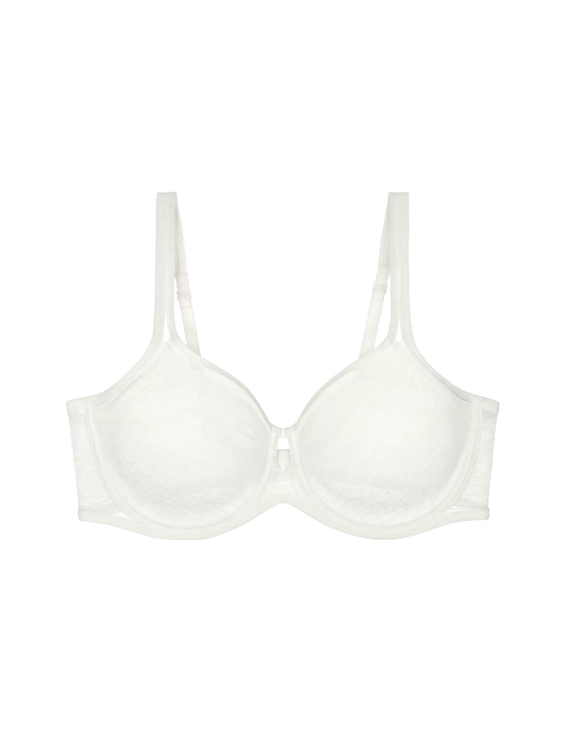 Soft bra with underwires, providing perfect breast support. Designed from light, flexible and breathable material. The model perfectly rounds the bust, giving it a natural look. Openwork double material gives a sense of freedom and lightness. Adjustable straps allow you to perfectly fit the bra to your body shape. Fastening at the back with traditional hooks. Composition: 59% Polyamide, 41% Elastane.