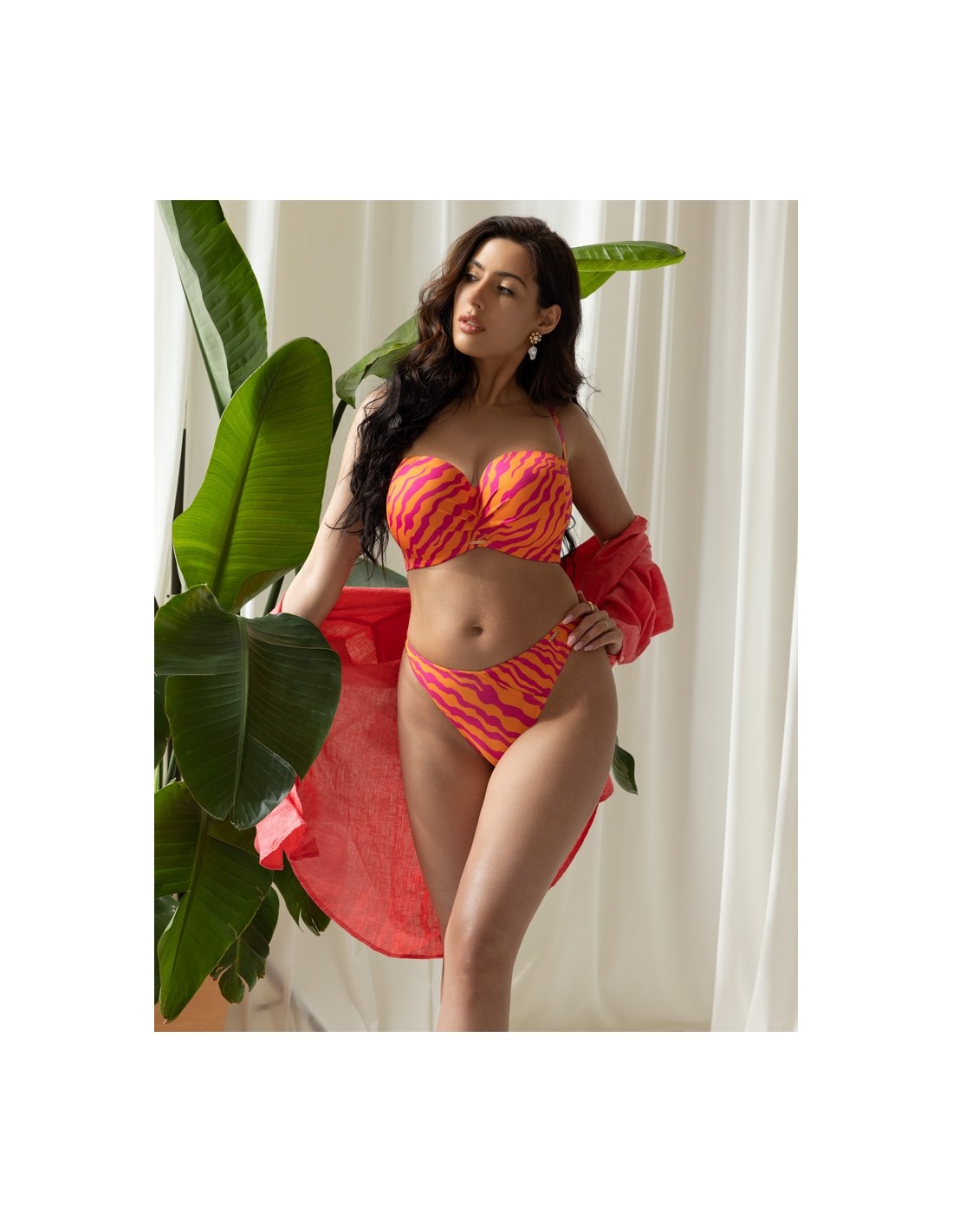 The bikini model, as the lower part of the swimsuit, is characterized by bold cutouts at the hips, which not only gives a dynamic and modern look, but also visually lengthens the legs, exposing their phenomenal length. This well-thought-out cut is a response to the needs of women looking for a combination of style, comfort and subtle sensuality during summer days spent on the beach or by the pool. Bikini swim briefs from the Krisline Rio series come in a delightful palette of pink and orange colors, being an important element of the beach collection that celebrates women's beauty.