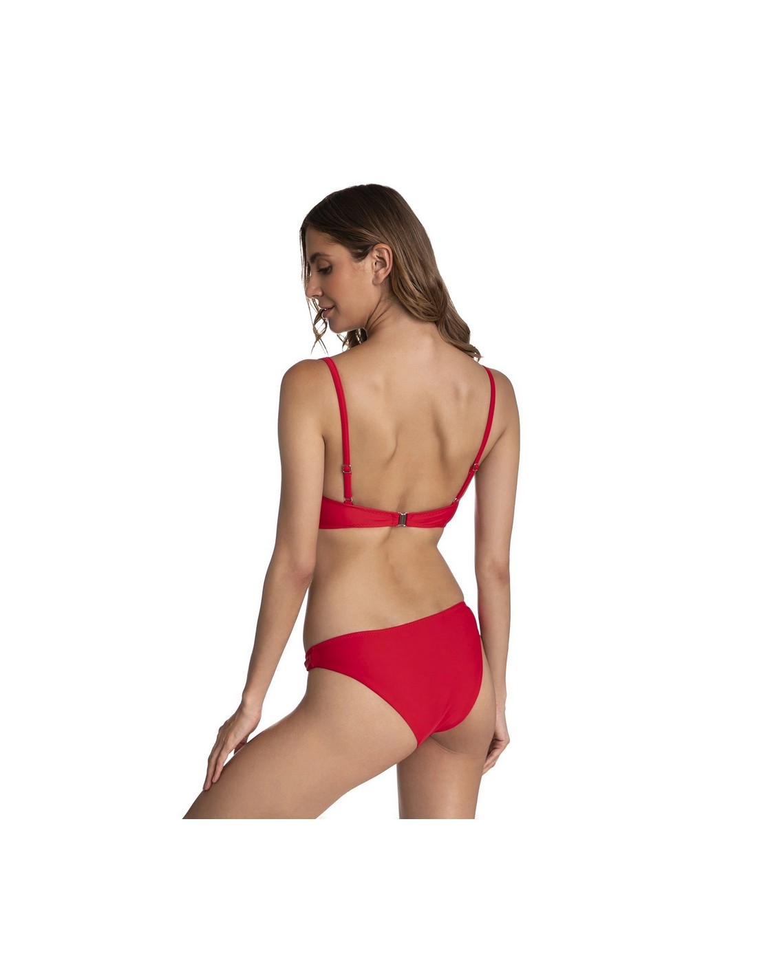 A two-piece swimsuit, a combination of classic with a modern accent, perfectly tailored to the female silhouette. Stiffened cups with a push-up effect gently emphasize the bust, while providing comfort and self-confidence. Underwires effectively stabilize and shape the bust, and adjustable straps allow for a perfect fit. A decorative bow-shaped loop adds subtlety, and the metal bra buckle ensures durability and safety. Classic briefs with adjustment and a double layer of material allow for complete freedom of style choice.