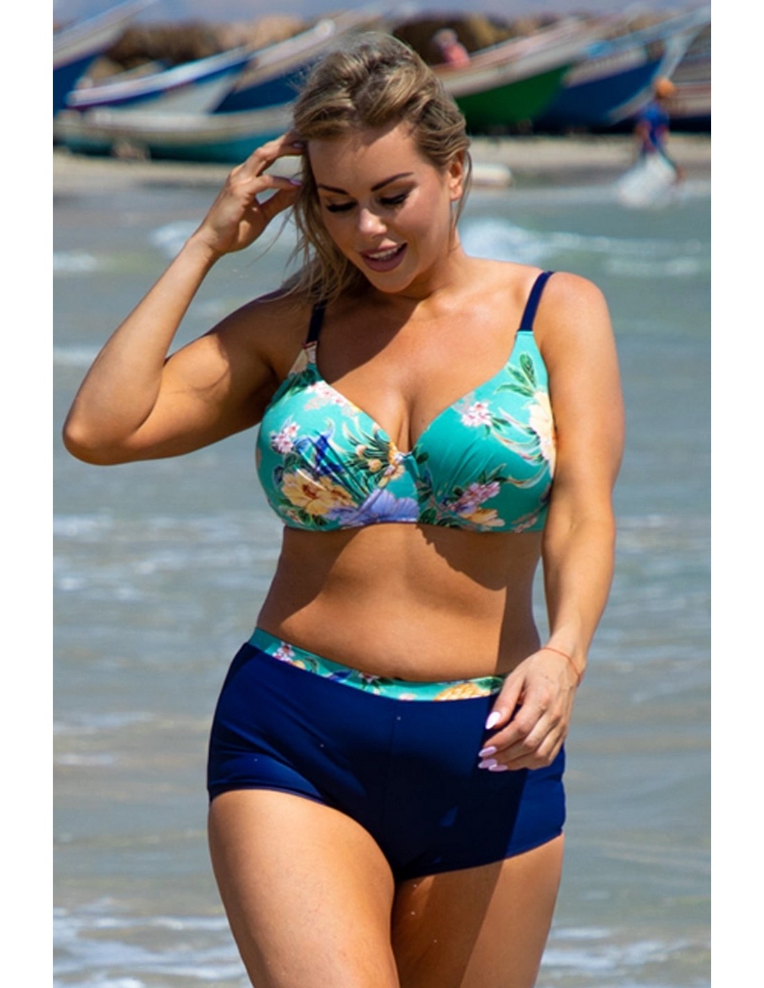 MODEL 529 is a classic two-piece swimming costume in unique structured fabric. The bra gathers and emphasizes the bust and cleavage, while the wide, adjustable straps ensure comfort. The top comes with mid-rise panties that shape the waist and cover the tummy.