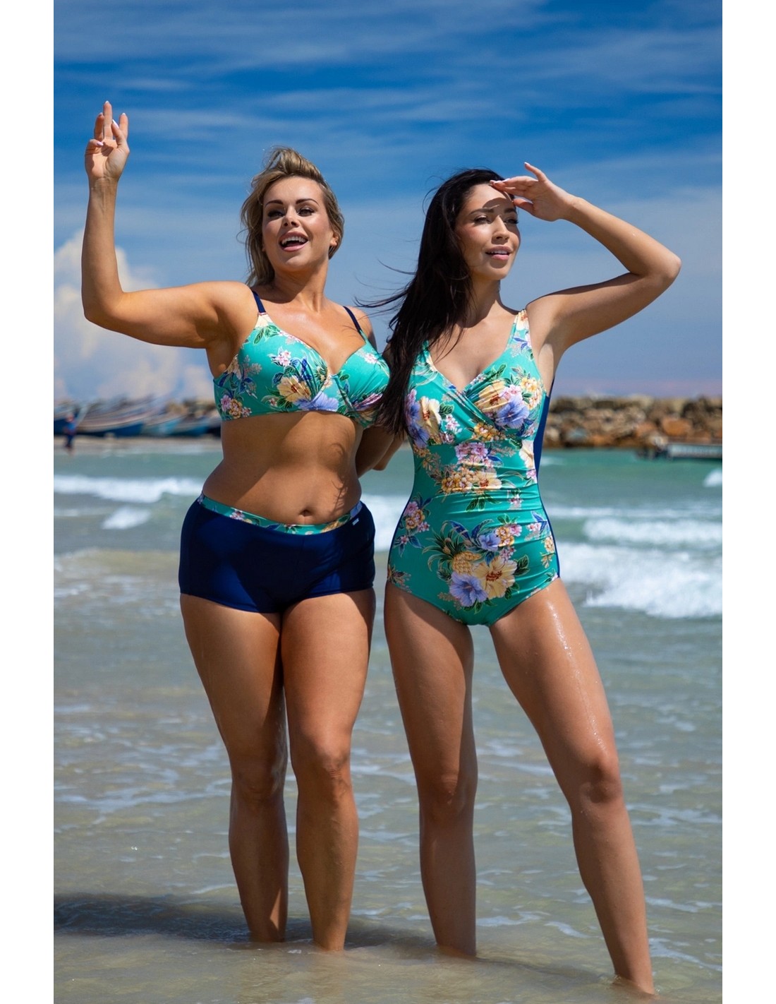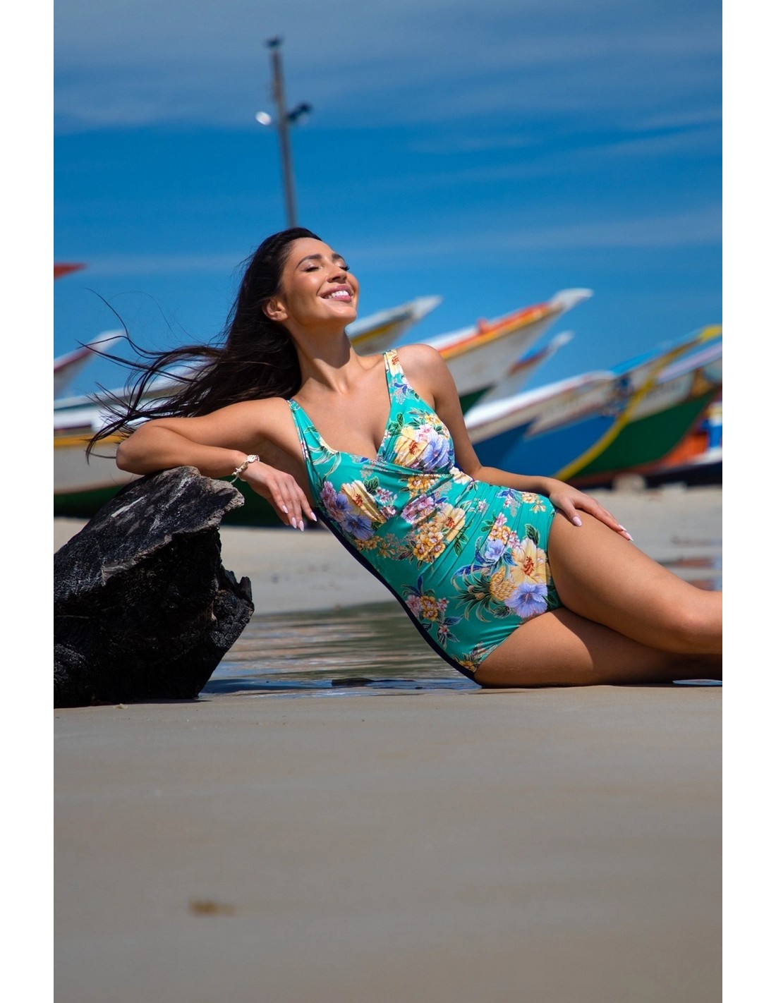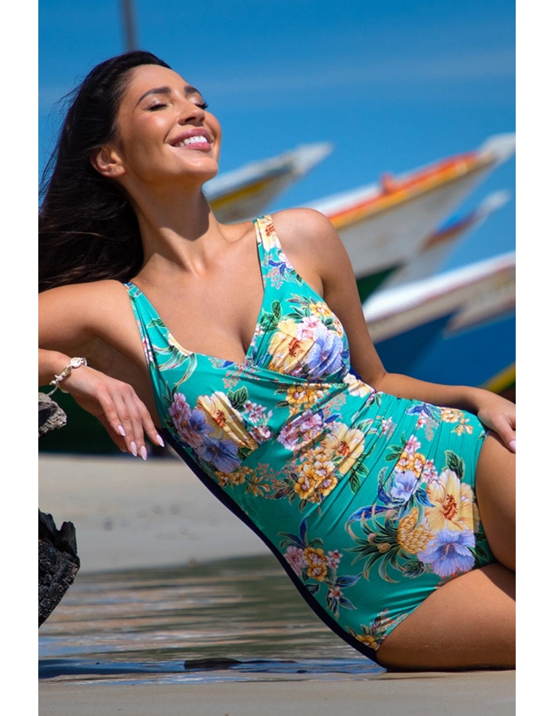 MODEL 52 is a one-piece swimsuit which will be perfect both on the beach and by the pool. The wide shoulder straps and wrapover front support the bust and emphasize the cleavage, while delicate creases shape the silhouette