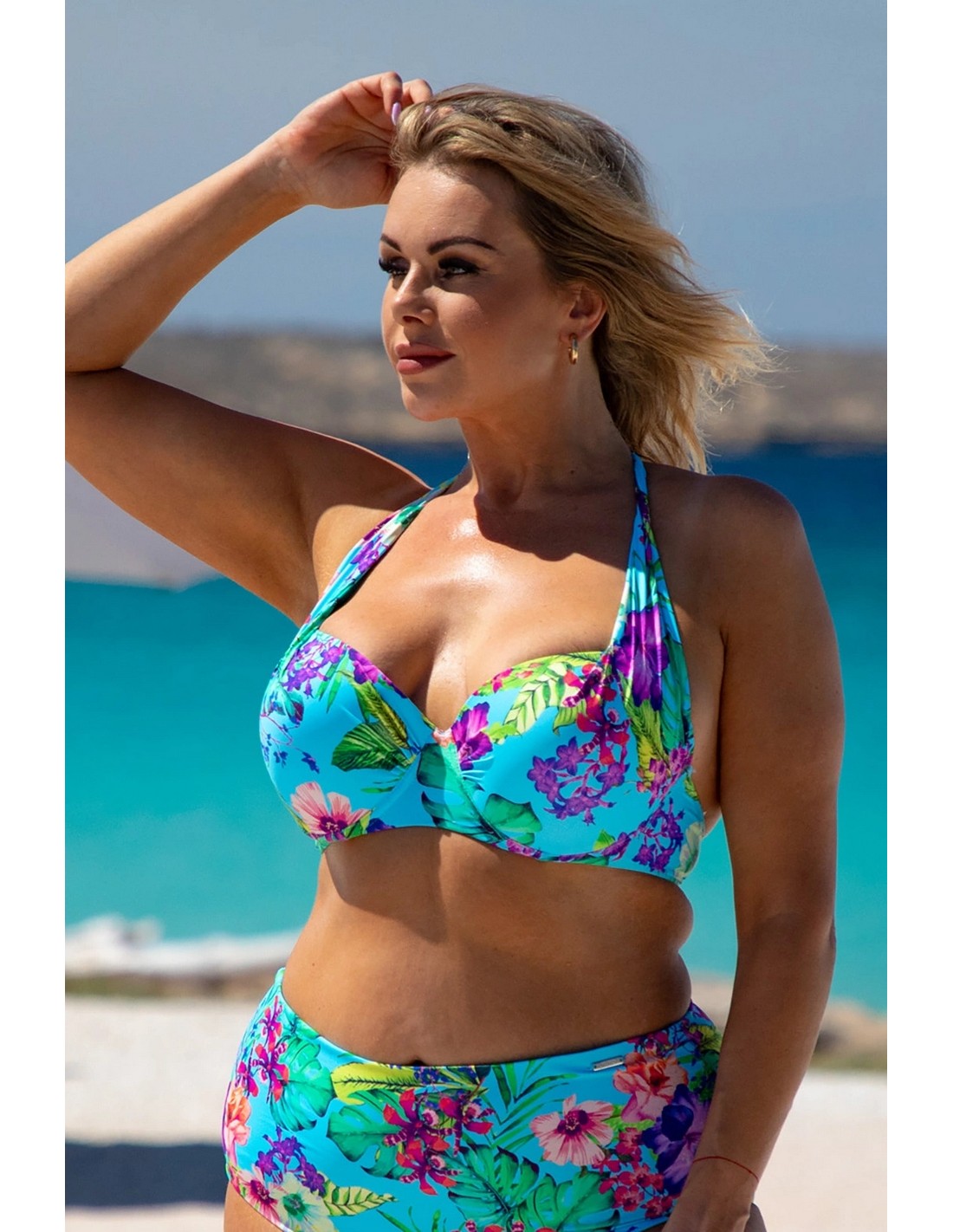 MODEL 52 is a one-piece swimsuit which will be perfect both on the beach and by the pool. The wide shoulder straps and wrapover front support the bust and emphasize the cleavage, while delicate creases shape the silhouette