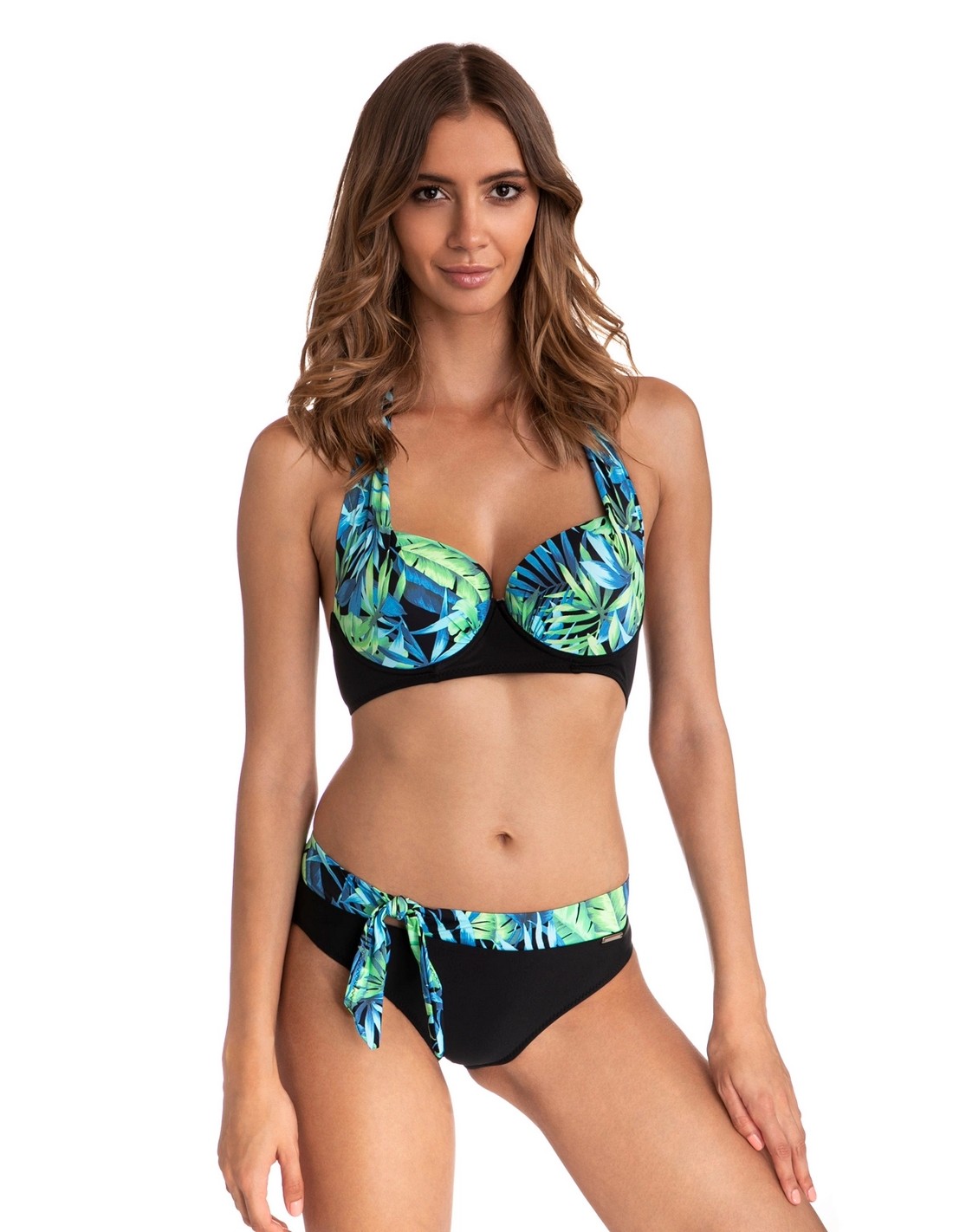 MODEL 464 is an extremely feminine two-piece swimming costume. The bra with moulded cups exceptionally gathers and lifts the bust, and the neck tie emphasizes the cleavage.