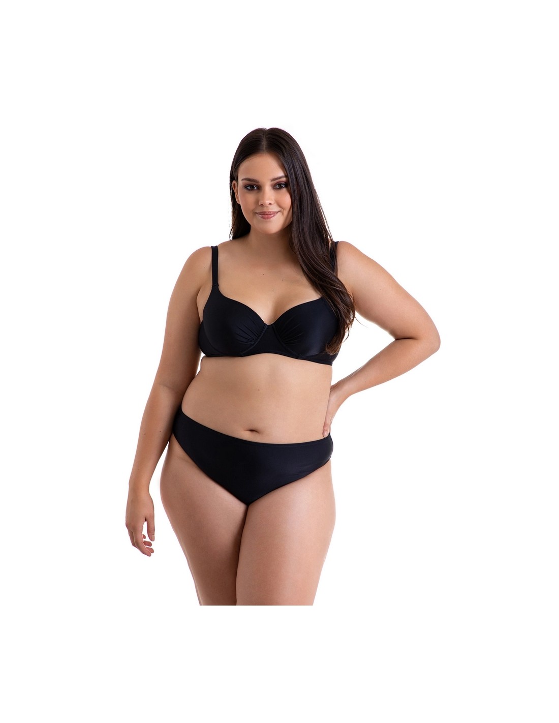 MODEL 404 is a feminine two-piece swimsuit. The balconette bra supports the breasts and the adjustable and detachable shoulder straps are perfect for sunbathing.