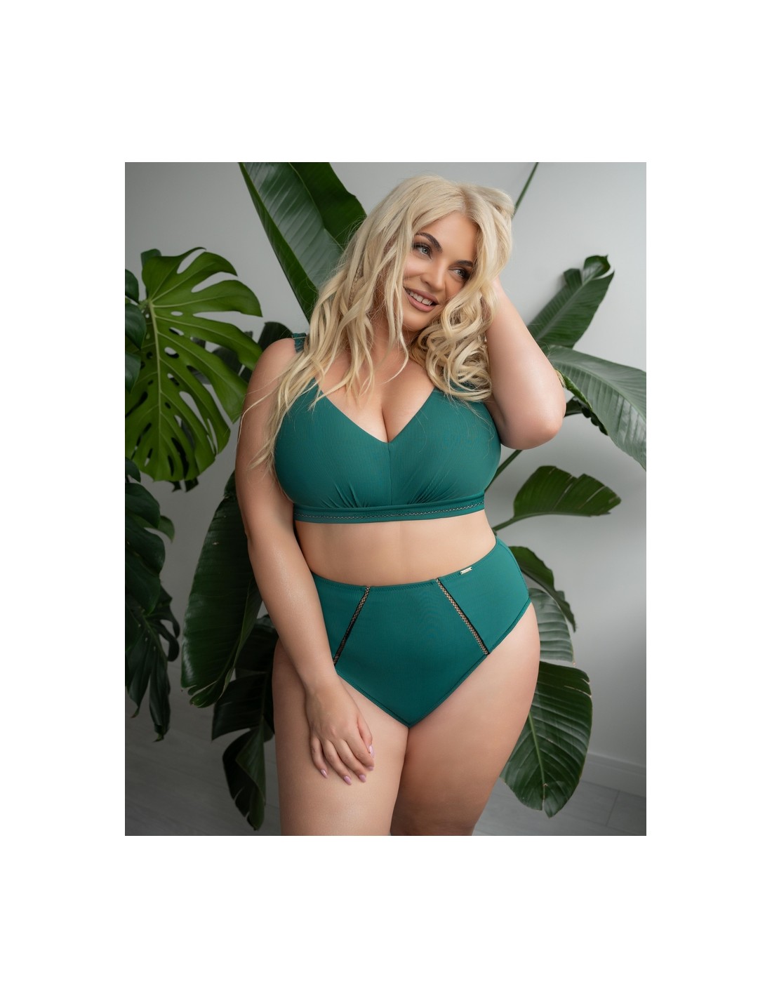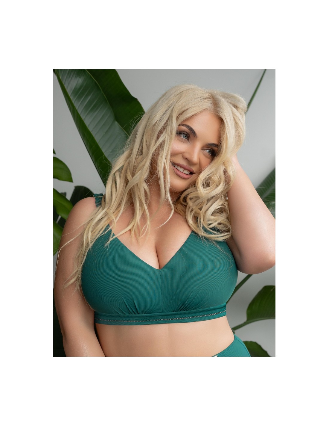 The Krisline Tarifa bralette bikini swimsuit is a perfect combination of comfort and elegance, created for women who value a natural emphasis on the shape of their breasts. This model is distinguished by soft, non-wired cups that gently envelop the breasts, providing comfort even during long wear. Fastened at the back, with non-detachable straps that guarantee stability and firm support. The deep green color and subtle decorations give it a unique character, making it look great both on the beach and by the pool. The material is pleasant to the touch, quick-drying and resistant to chlorine and UV rays. An excellent choice for women who prefer a natural look and full comfort, which can be combined with various models of briefs from the same Tarifa collection. Composition: 80% polyamide, 10% elastane, 10% polyester.