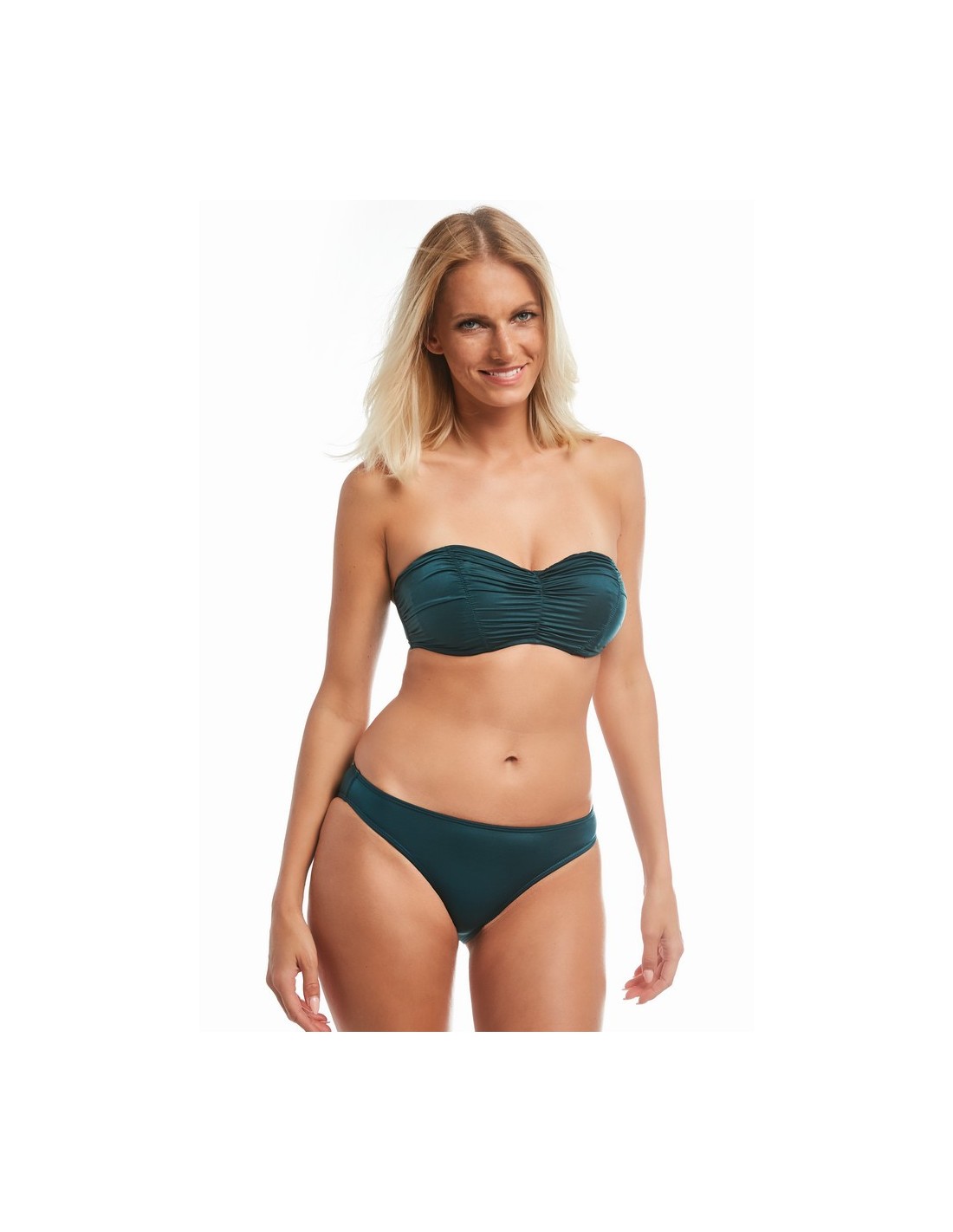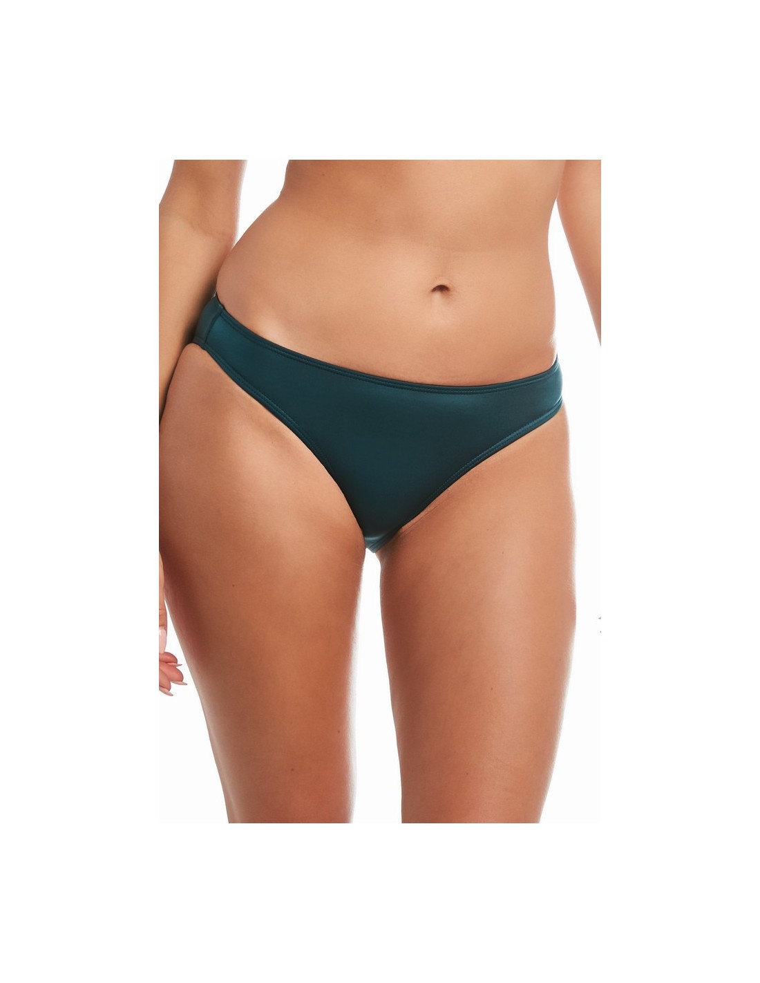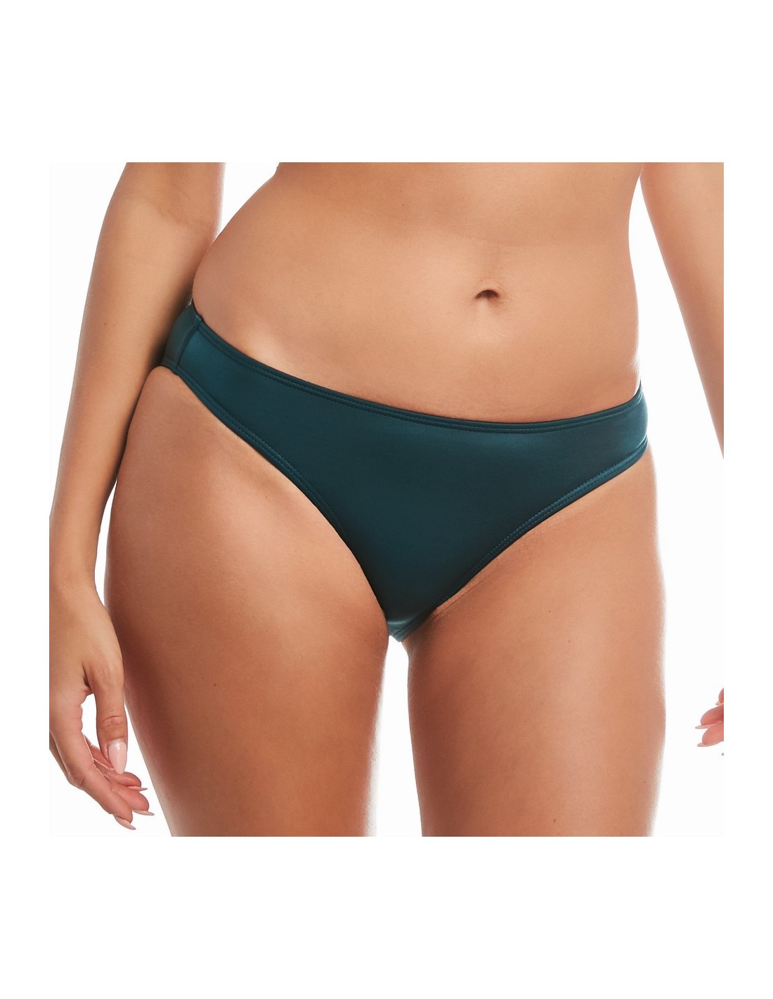 Beach bathing briefs with a beautiful emerald color, entirely designed with smooth, high-quality elastic fabric. The model with a classic cut perfectly emphasizes the feminine shapes.
