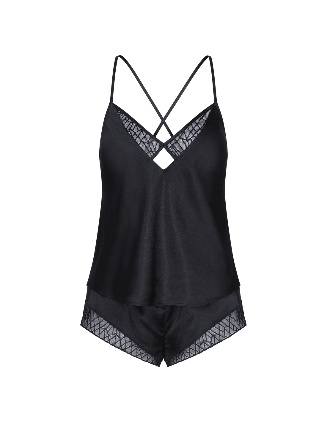 ? Sensual, low-covering shorts and deep-back camisole with lace inserts