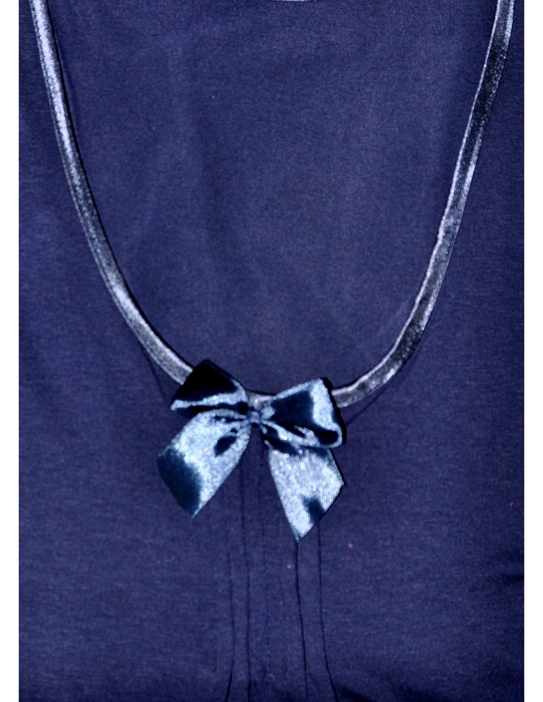 Women's pajamas which include a T-shirt with short sleeves and 3/4 length pants. The t-shirt on the neckline and sleeves is trimmed with a shiny ribbon. The neckline is decorated with a satin bow and draping of the material. The whole is made of pleasant to the touch, viscose material. This model is available in many colors. Material composition: 94% viscose, 6% elastane. | * |