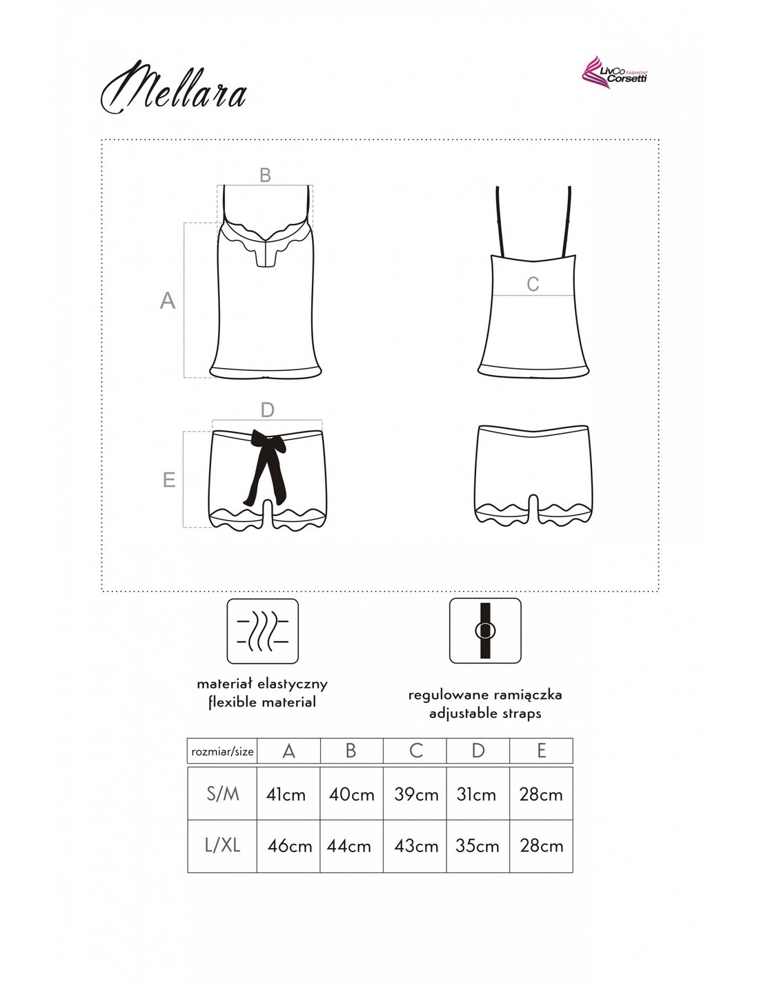 Beautiful satin set impresses with its original workmanship. The whole is made of navy blue satin with black polka dots. T-shirt decorated with a lace insert on the neckline. Shorts tied at the waist, finished with black lace.