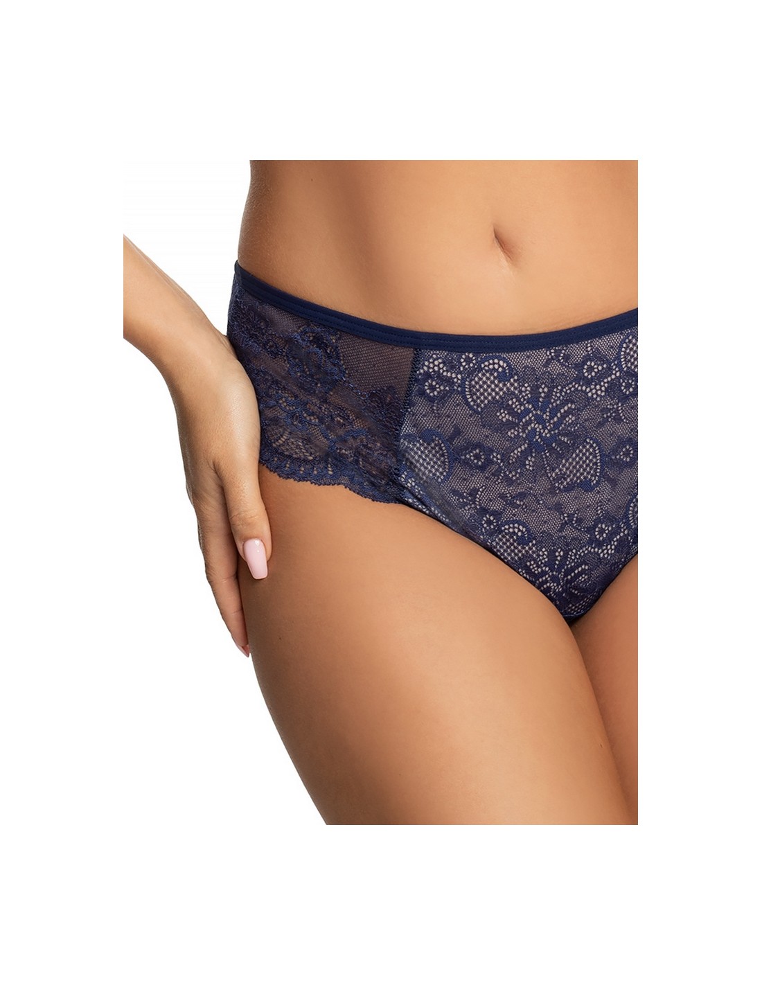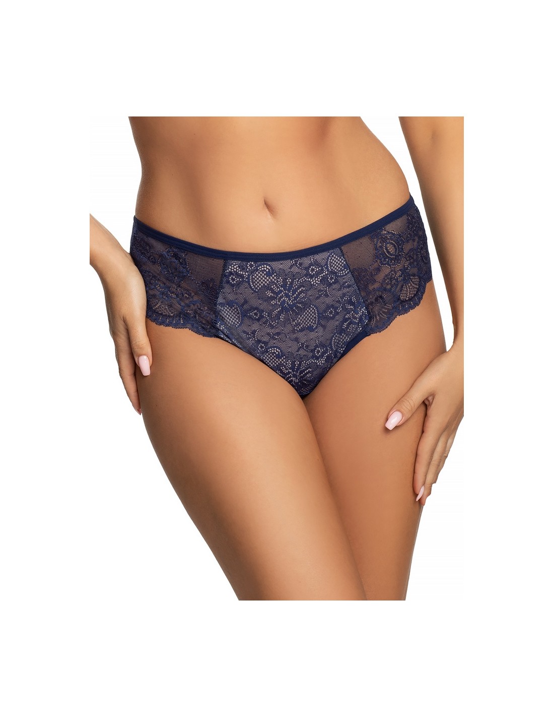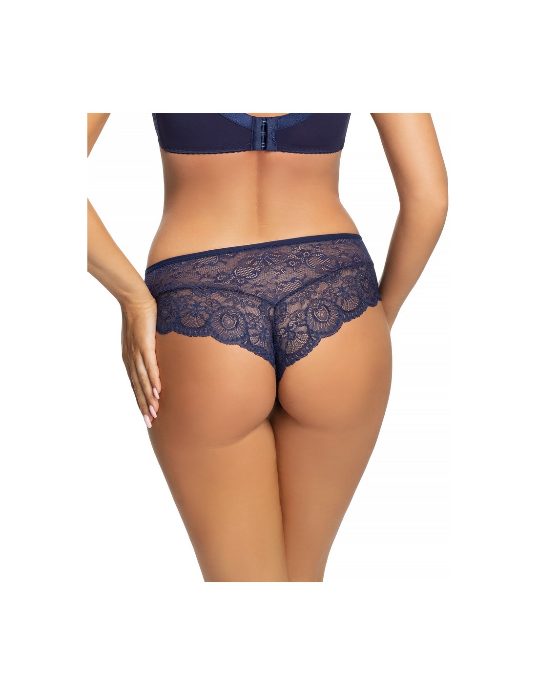 Navy blue Brazilian Gorsenia K358/1 Blanca shoes made of delicate lace look extremely feminine and stylish. The front of the panties is decorated with beautiful, floral lace, which emphasizes their unique character.