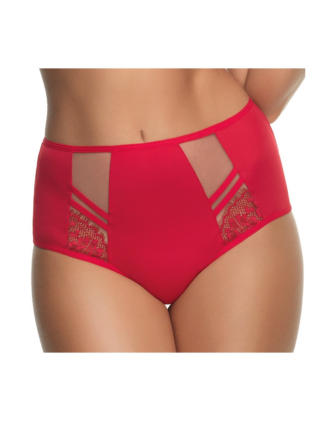 Gorsenia K498 Paradise is a high and very comfortable bikini bottom made of pleasant fabric, decorated with tulle and delicate lace inserts on the front. The back is smooth.