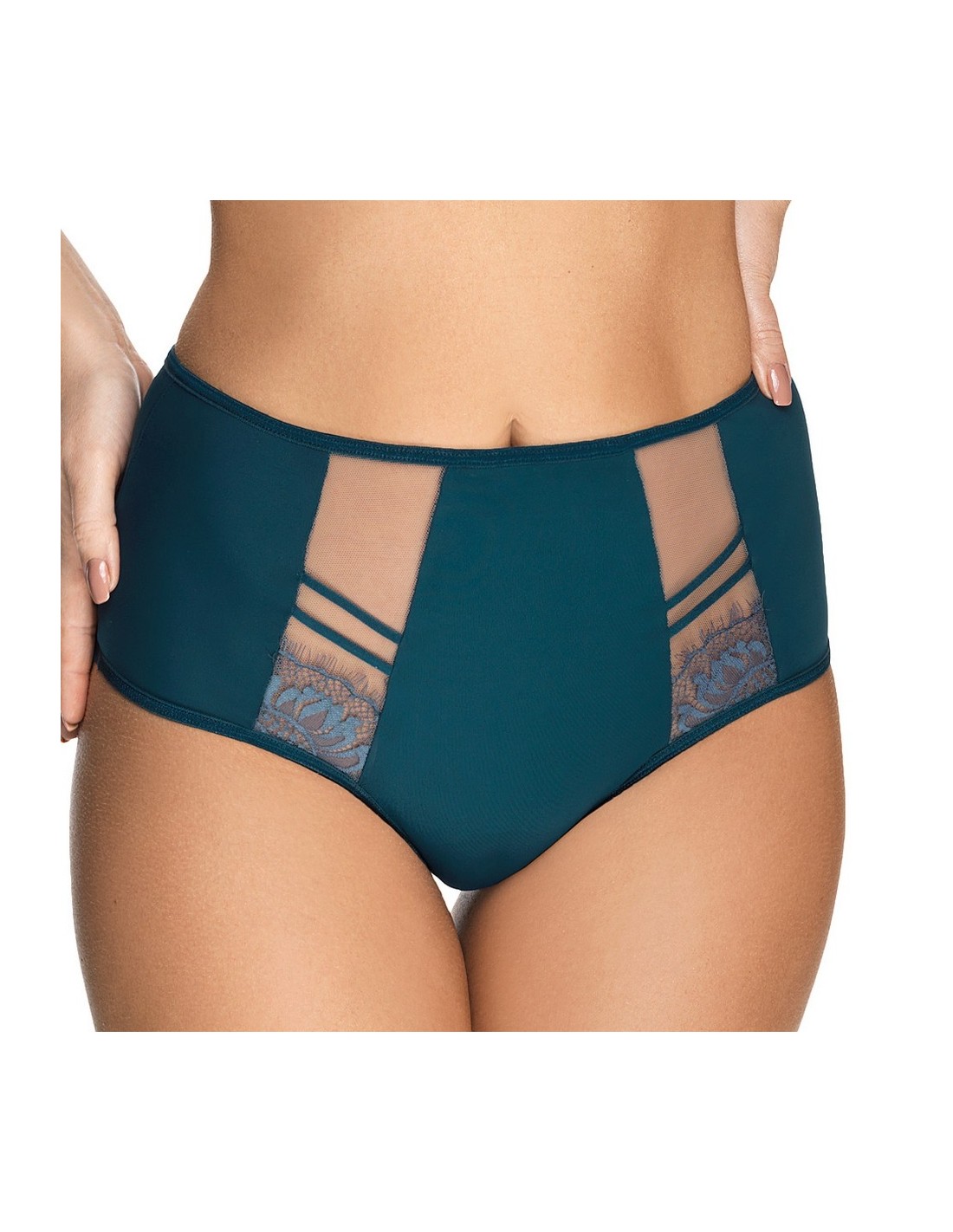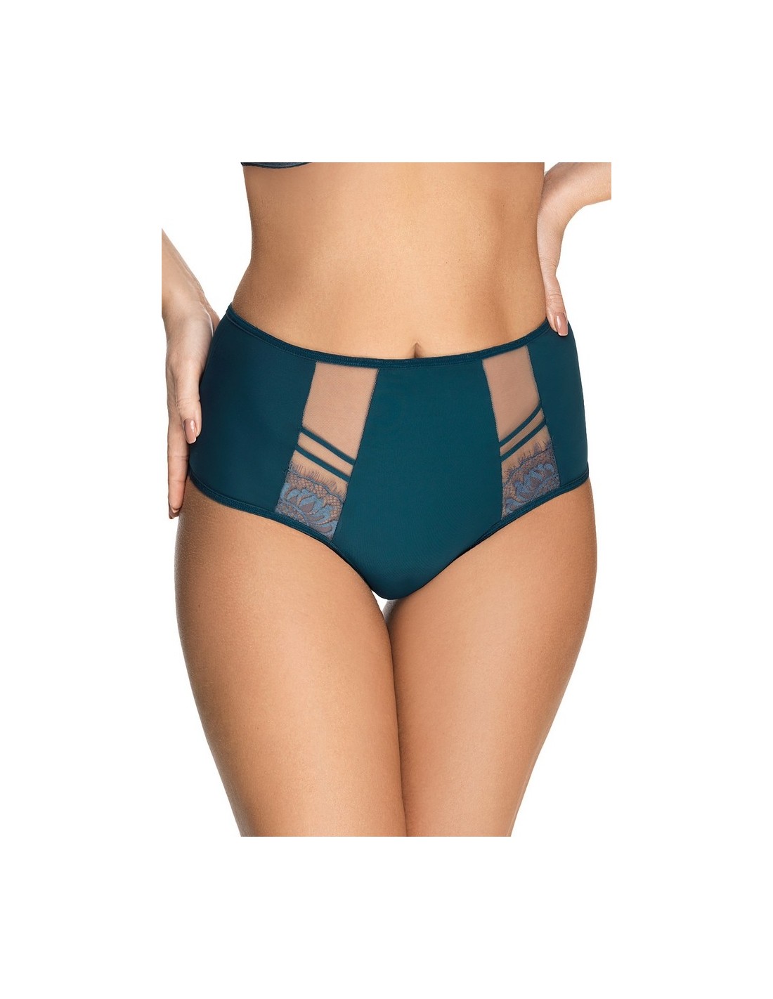Gorsenia K498 Paradise is a high and very comfortable bikini bottom made of pleasant fabric, decorated with tulle and delicate lace inserts on the front. The back is smooth. Legs on the front finished with smooth elastic band. On the back legs finished with smooth double folded tulle elastic.