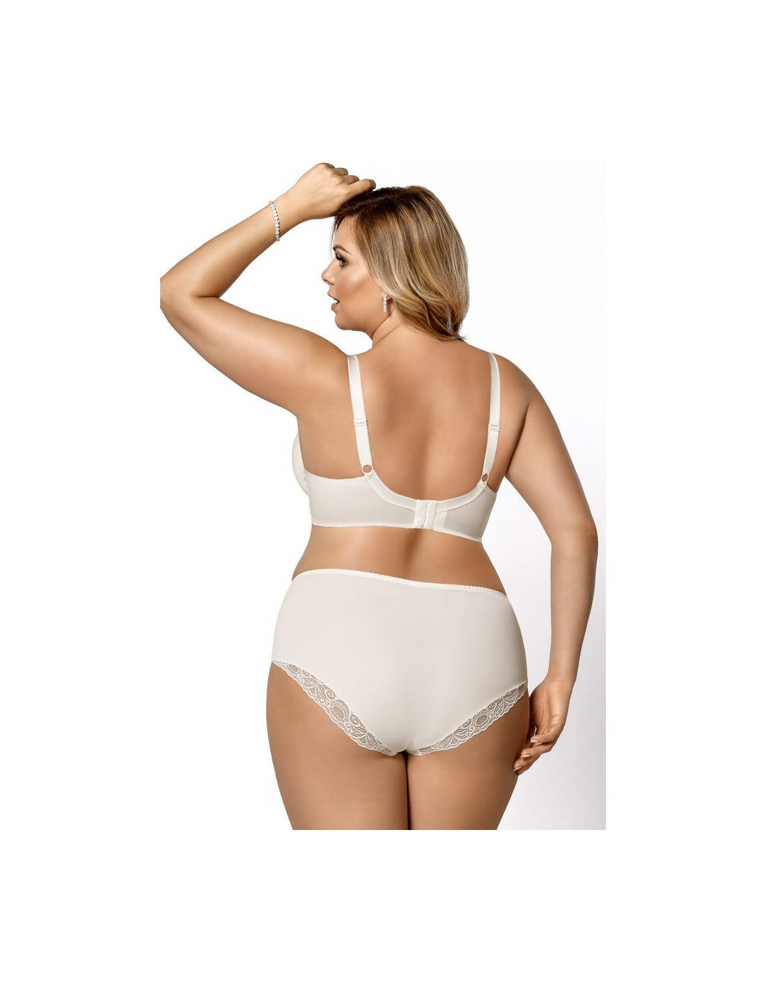 K425 Casablanca bra is a well-cut soft bra available in a wide range of colors. Underwired cups with a three-part design gather the bust well and keep it in place. The lower part of the cups is made of a smooth and strong fabric. The upper part of the cups, the bridge and the sides are made of beautiful lace, lined with a delicate mesh for reinforcement. In the middle there is a small bow with a jewelery ornament. The bra ensures that the breasts are perfectly gathered inwards, raised and have a nicely rounded shape. Wide sides made of lace lined with mesh, additionally equipped with vertical underwires, keep the bra in the right place. The back is made of a strong Lycra knit. Adjustable, non-removable shoulder straps, of various widths depending on the size. Clasp: 3-row, two- and three-row hooks depending on the size.