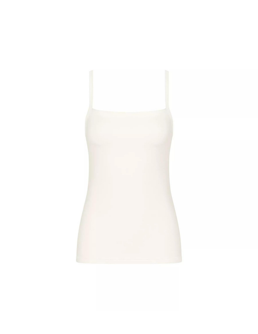 ?Styling details and a neutral palette reinforce the classic cool credentials. ? Spaghetti top with a modern square neckline