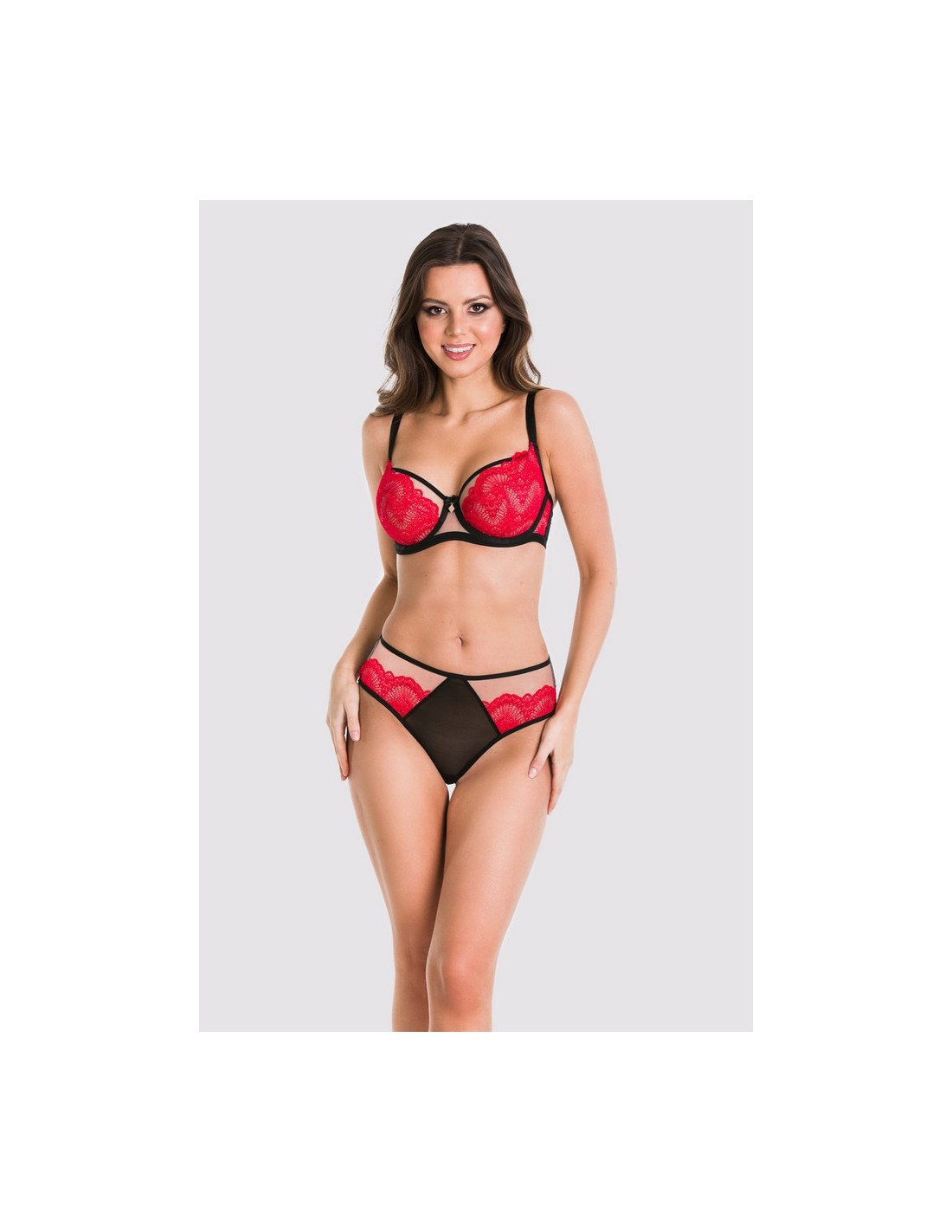 Figi Mediolano Amore 19169 to elegancki model z czerwoną koronką, stworzony z myślą o kobietach. Dzięki elastycznemu tiulowi zapewniają wygodę i świetne dopasowanie. Klasyczny krój tyłu idealnie podkreśla kształty.