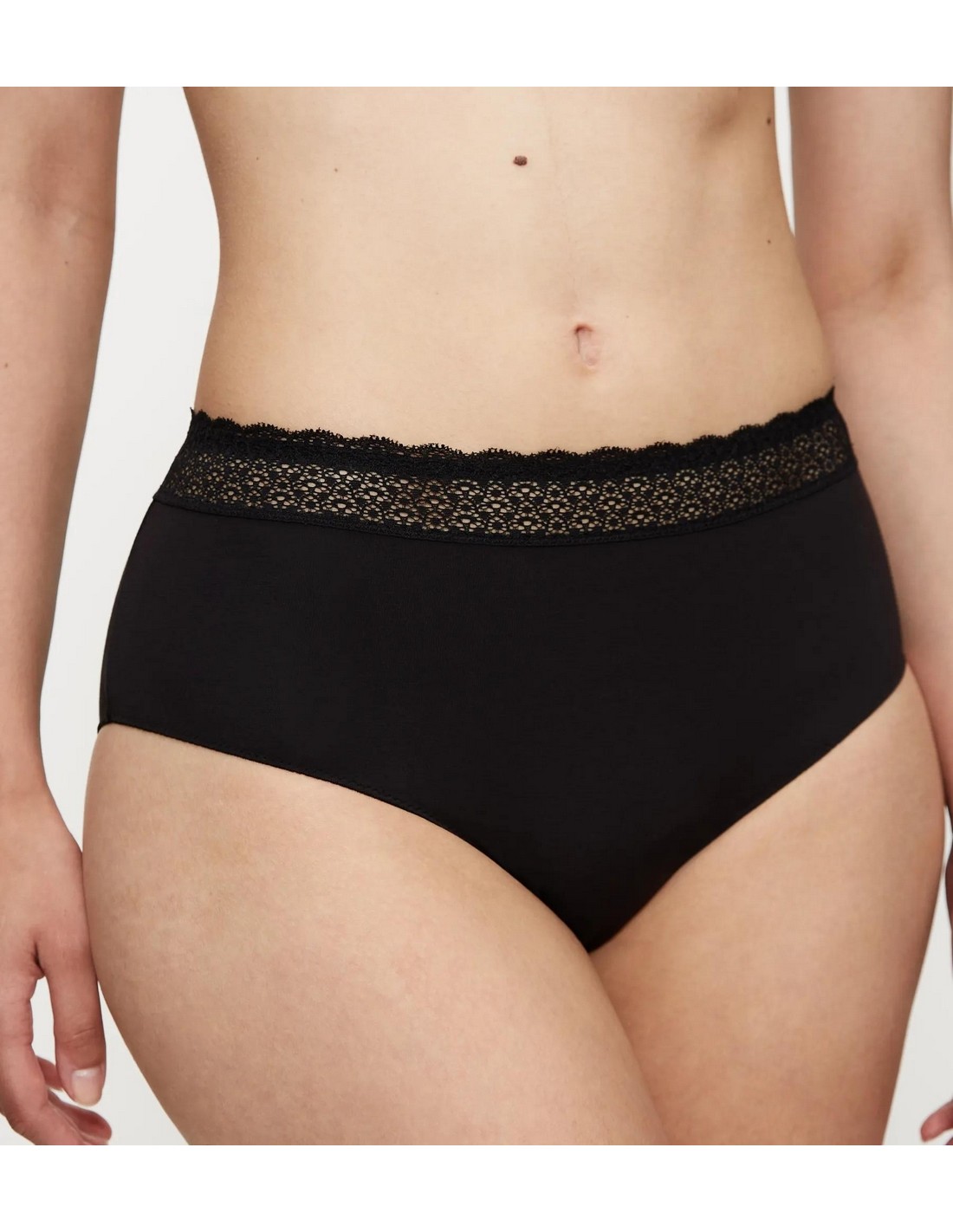 Majteczki midi z wysokim stanem dostępne w dwupaku. Bardzo wyjątkowo miękkie w dotyku. Ich pasek w talii ozdobiony jest koronką stworzoną z materiałów pochodzących z recyklingu. Dodatkowo, wstawka z bawełny organicznej zapewnia dodatkowy komfort użytkowania. Skład: 87% modal, 13% elastan.