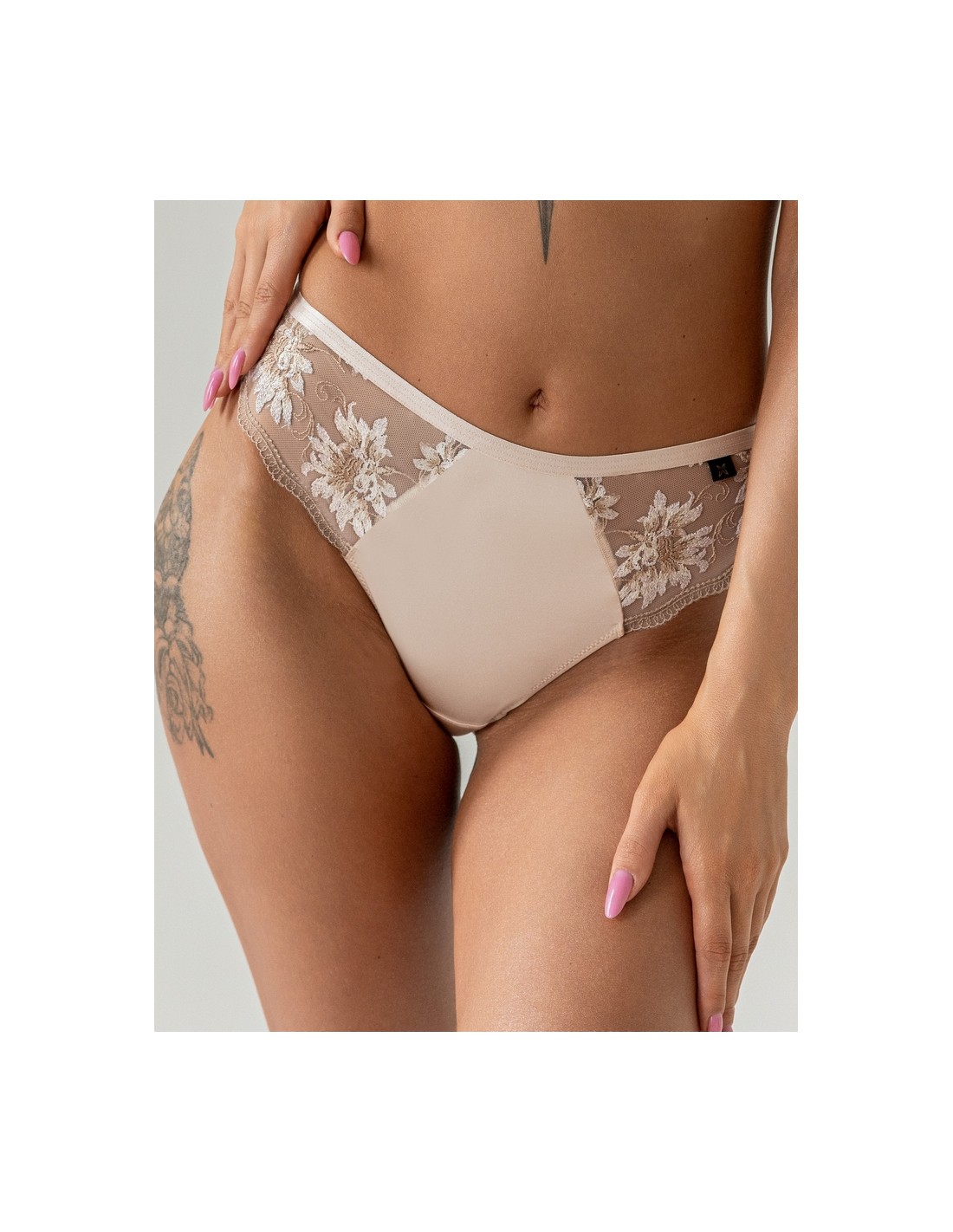 Koronkowe majtki Krisline Pure charakteryzują się delikatnym krojem, który idealnie dopasowuje się do sylwetki. Koronkowe wstawki po bokach dodają im subtelności i kobiecości, co sprawia, że są doskonałym wyborem na różne okazje. Wykonane z wysokiej jakości materiałów, figi zapewniają wygodę przez cały dzień. Ich miękkość oraz elastyczność sprawiają, że noszenie ich staje się przyjemnością. Dobrze sprawdzą się zarówno na co dzień, jak i w czasie specjalnych wydarzeń, podkreślając każdą stylizację.