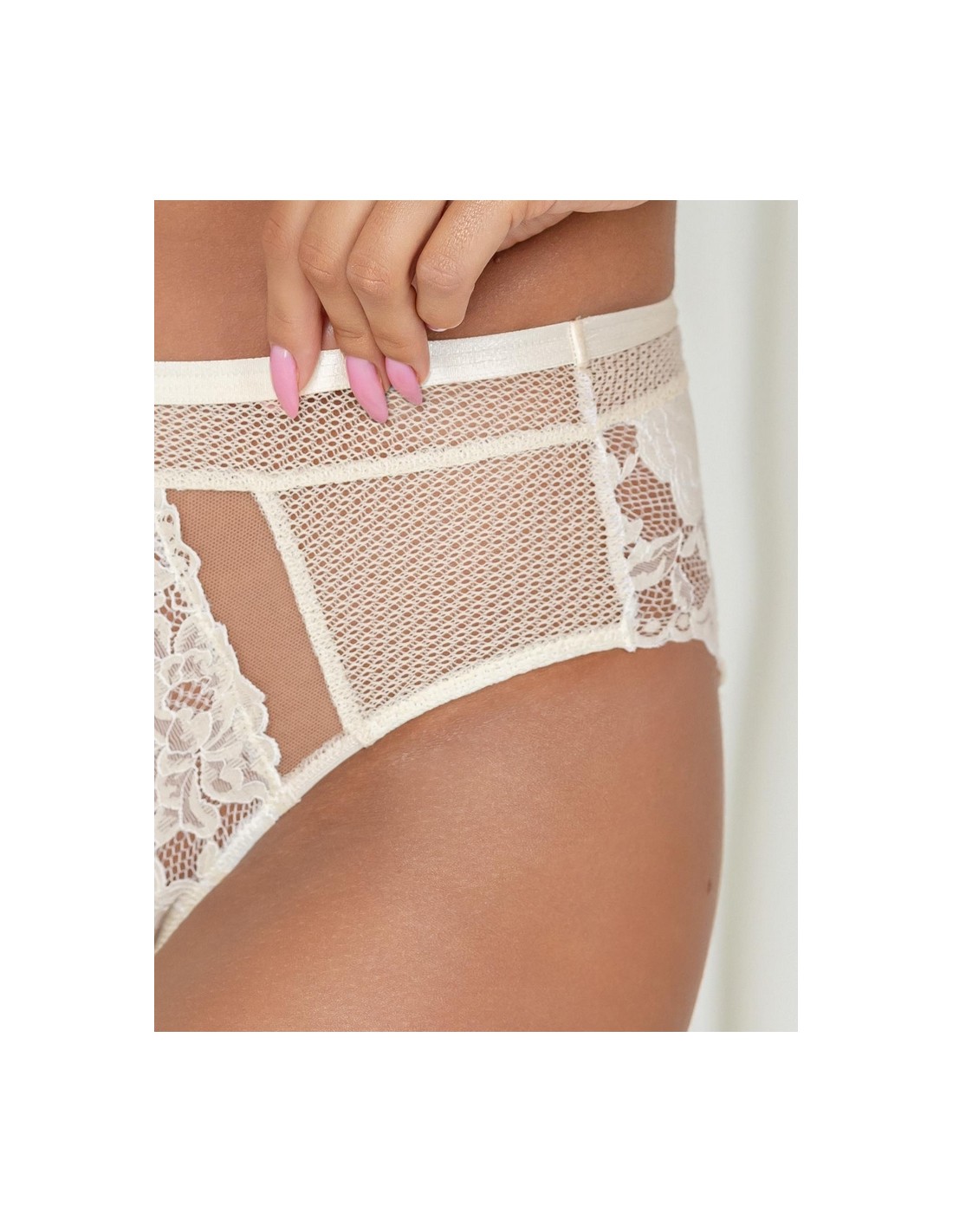 Figi damskie Krisline Cotton Flower w kolorze ecru to wygodne majtki o wysokim stanie. Idealne dla kobiet ceniących komfort noszenia oraz subtelną elegancję. Koronkowe wykończenie dodaje im wyjątkowego uroku.