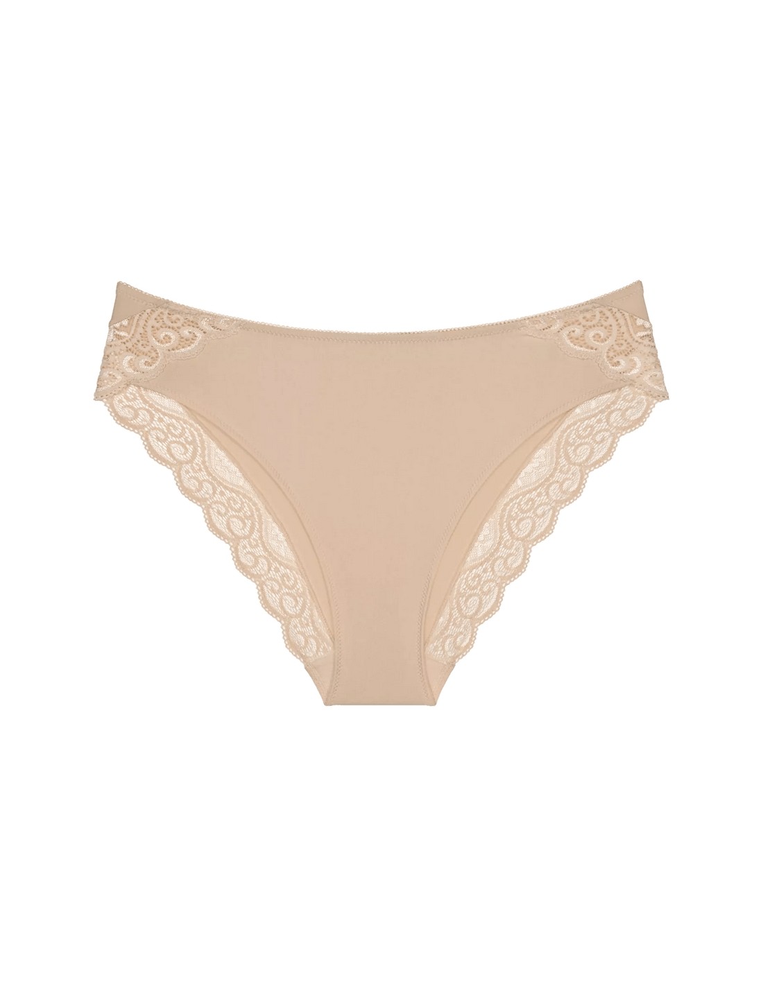 Wykonane z miękkiej mikrofibry (83% poliamid, 17% elastan) gwarantują wygodę i doskonałe dopasowanie. Delikatne koronki i satynowe detale dodają subtelności, podczas gdy nowe, cieńsze elastyczne pasy zwiększają komfort noszenia. Przód majtek został podszyty elastycznym materiałem który delikatnie modeluje brzuch. Idealne pod codzienne ubrania oraz na specjalne okazje.