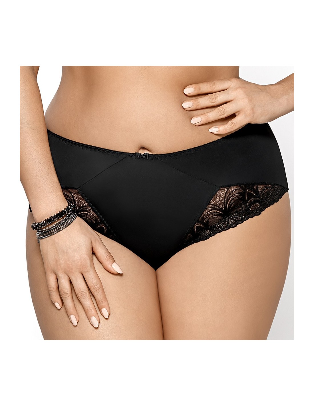 Majtki Casablanca to eleganckie, klasyczne figi wykonane dla Pań, które w bieliźnie prócz wygody cenią sobie piękny wygląd. Figi delikatnie wymodelują sylwetkę i pozwolą posiadaczkom tych fig poczuć się wyjątkowo. Majtki z miękkiej i przyjemnej microfibry. Z przodu ozdobione dwiema koronkowymi wstawkami oraz małą kokardą pośrodku. Tył jednolity i gładki. Nogawki wykończone delikatną koronką.