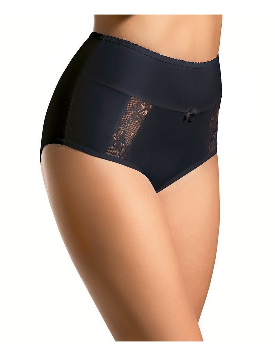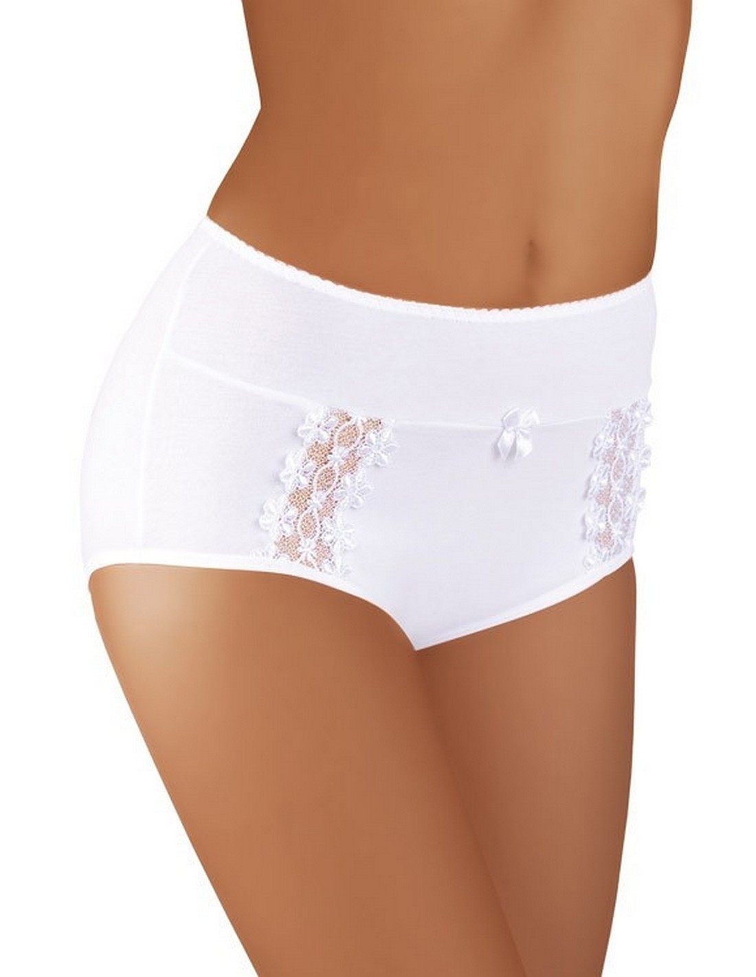 Wysoko zabudowane figi damskie typu midi bikini stworzone z wysokiej jakości tkaniny bawełnianej z dodatkiem lycry. Odcinany przód ozdobiony małą kokardą oraz koronkowymi wstawkami nadaje całości rewelacyjnie kobiecego charakteru.