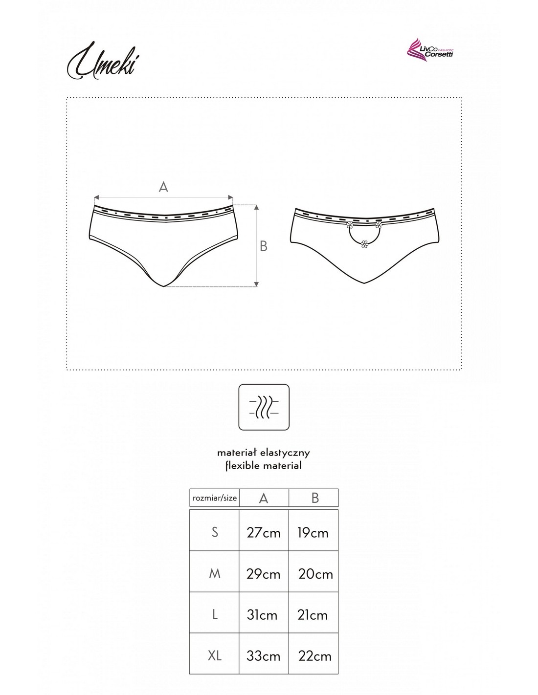 Zmysłowe figi w kolorze białym o klasycznym fasonie. Spełniają wszystkie wymagania kobiecej wygody, są elastyczne o świetnej jakości wykonaniu. Model ten podniosą pośladki nadając kobiecej sylwetce bardziej powabnych kształtów. Góra majteczek wyszyta została zalotnym wzorkiem układającym się pośrodku prześwitującego materiału, daje to ujmujący optyczny efekt. Z tyłu majteczek subtelne wycięcie odsłaniające trochę ciałka ozdobione uroczymi materiałowymi kwiatuszkami. W skład materiału wchodzi: 90% poliamid, 10% elastan.