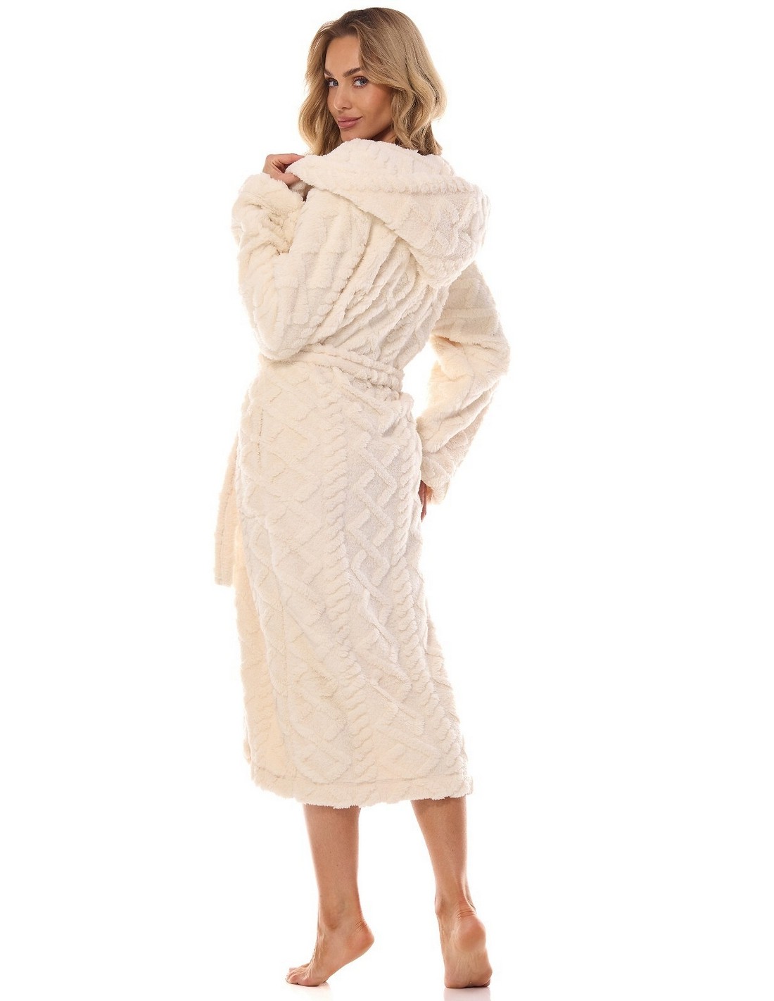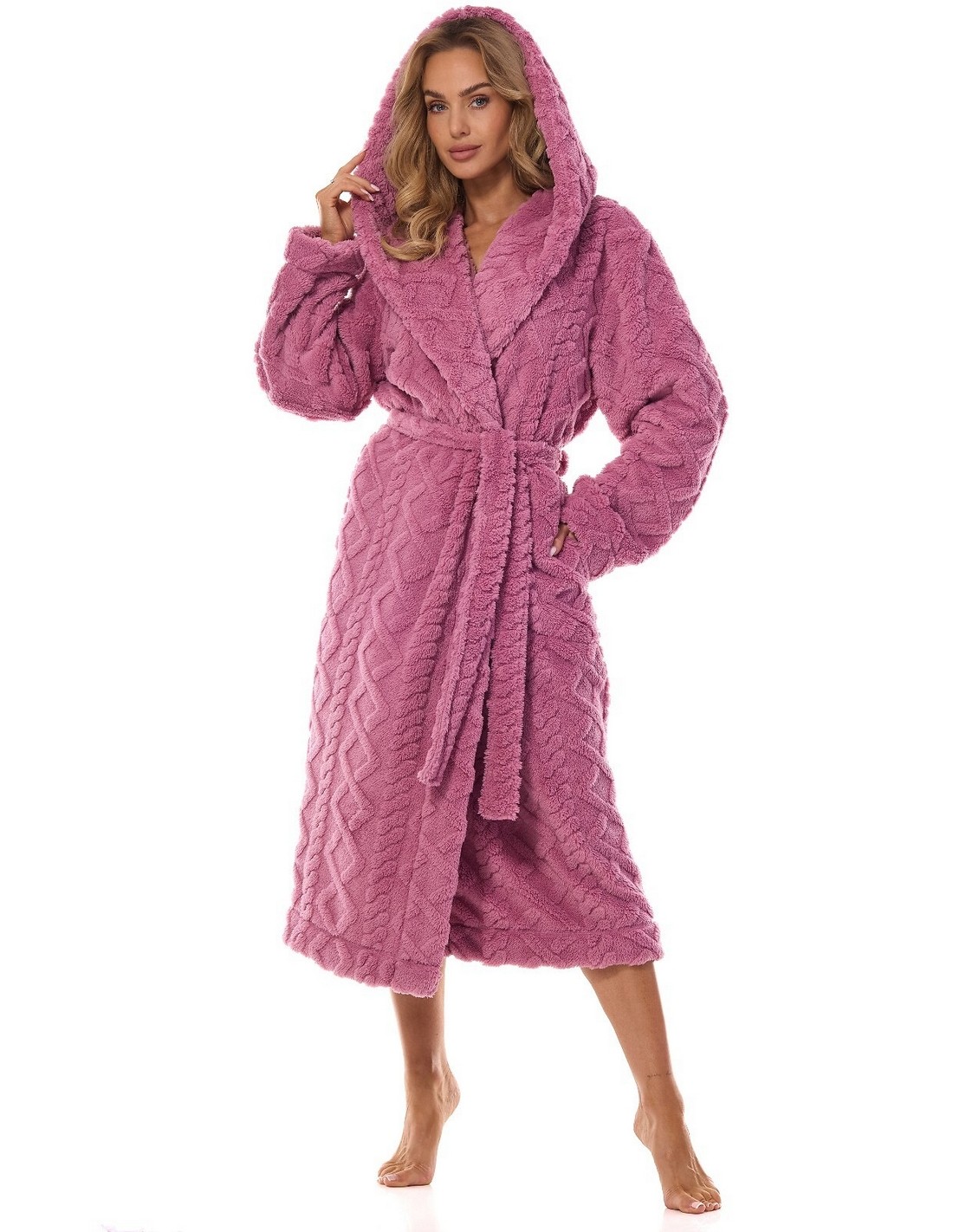 Szlafrok damski z kapturem L&L Geo 2402, długi i ciepły