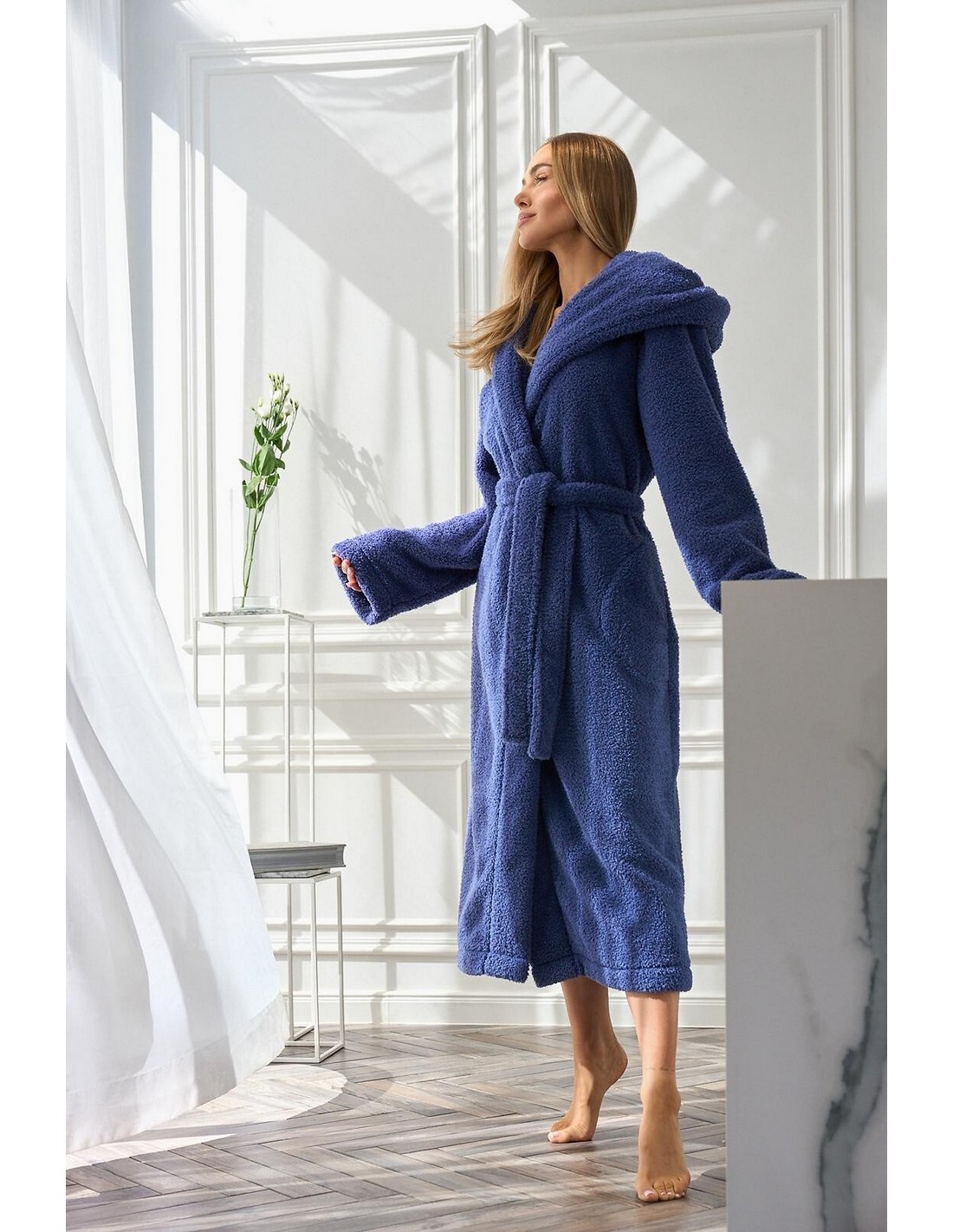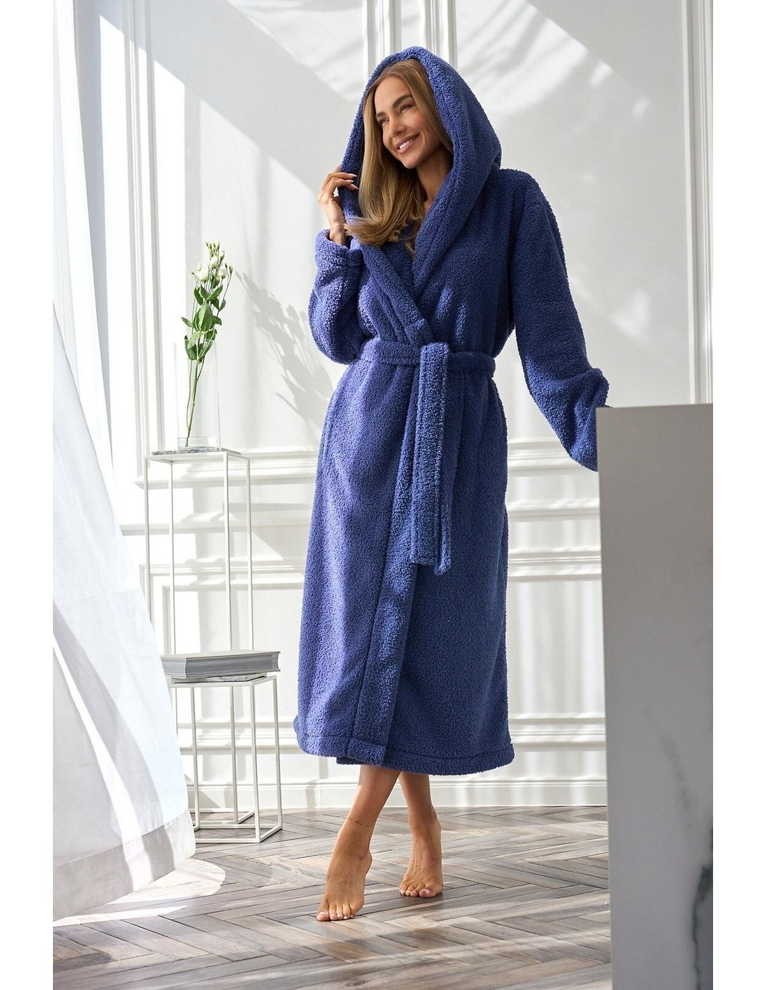 Poczuj niezrównany komfort i ciepło z długim szlafrokiem damskim L&L 2556. Wykonany jest z miękkiej, grubej dzianiny, idealnie otula ciało, zapewniając przyjemne uczucie miękkości i relaksu. Długi fason z kapturem, długimi rękawami oraz praktycznym wiązaniem w pasie sprawia, że szlafrok znakomicie dopasowuje się do ciała, a dodatkowe kieszenie zwiększają jego funkcjonalność. To świetny wybór na zimowe wieczory, leniwe poranki czy domowe chwile odpoczynku. Elegancki i praktyczny, będzie niezastąpionym elementem garderoby każdej kobiety.