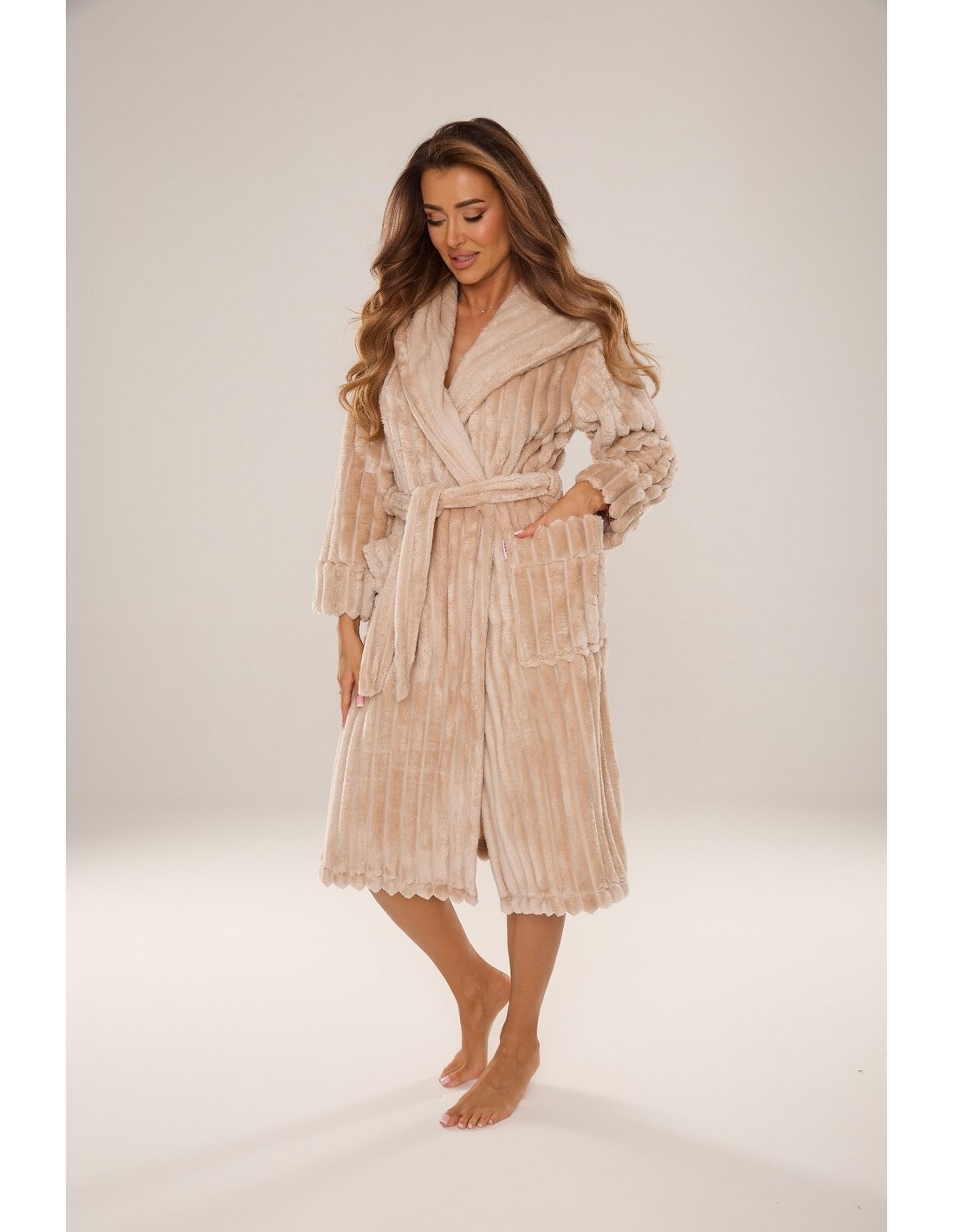 Długi szlafrok damski z kapturem