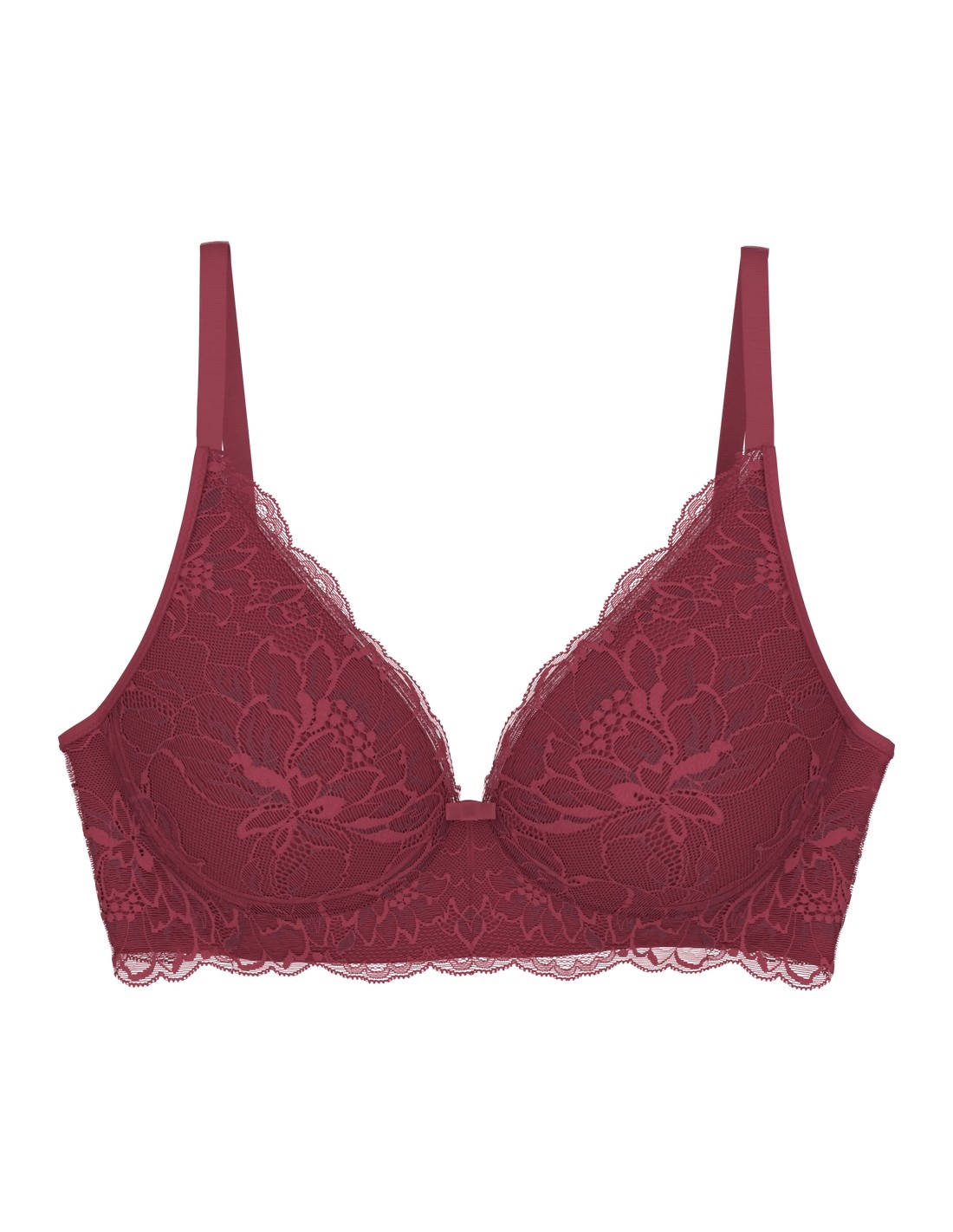 Braletka Triumph Amourette Charm T N03 w kolorze sweet marsala to nowoczesny, koronkowy biustonosz bez fiszbin, który łączy elegancję z wyjątkowym komfortem.