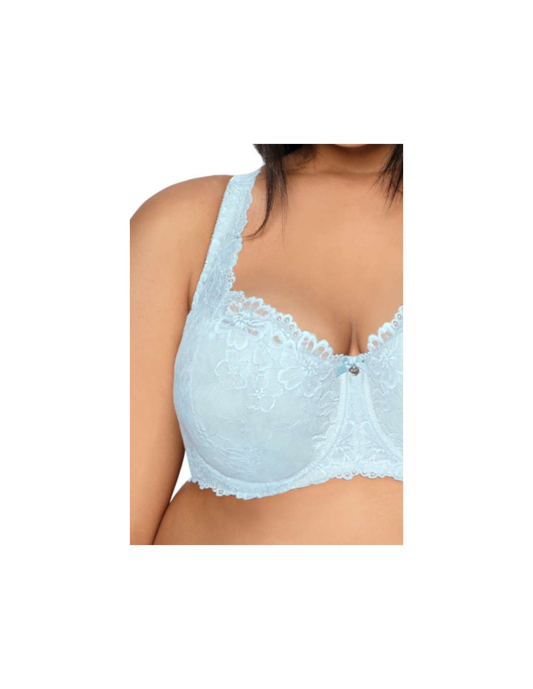 Usztywniany stanik, w całości wykonany z finezyjnej koronki. Ramiączka regulowane, nieodpinane. Haftka dwurzędowa z trójstopniową regulacja.