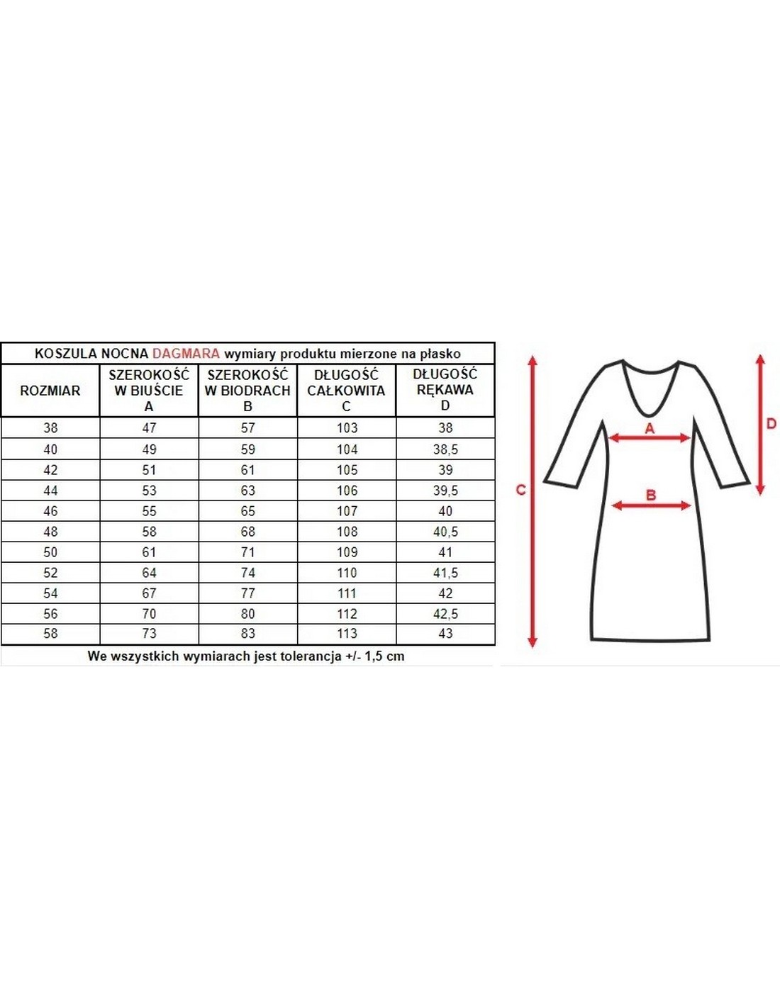 Koszulka nocna Dagmara ma szeroki rękawek na 3/4 długości, dzięki czemu perfekcyjnie maskuje ramiona, jednocześnie umożliwiając swobodę ruchów i komfort na co dzień.