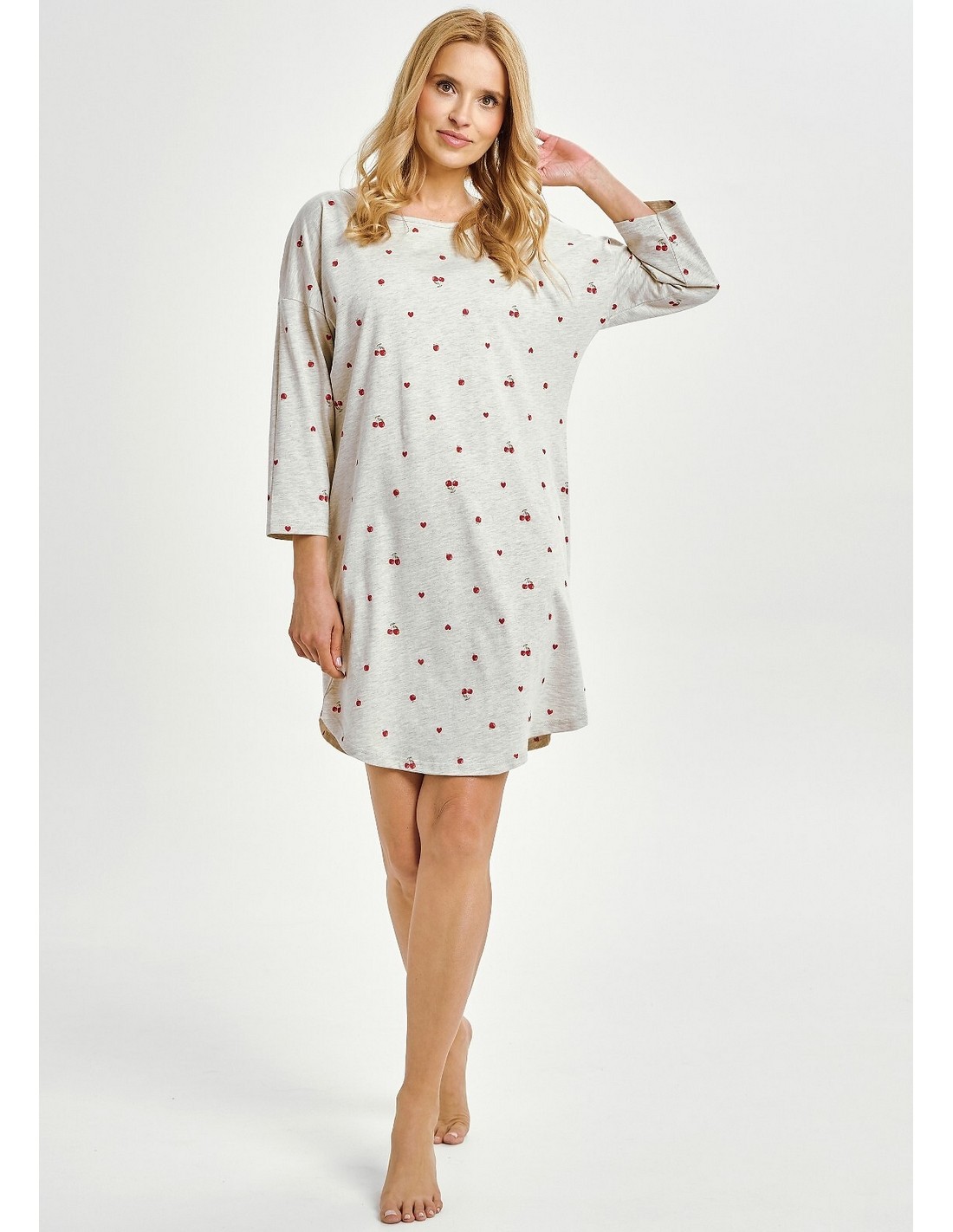 Koszula nocna Adele 3431 to połączenie klasyki, wygody i subtelnej elegancji. Wykonana z wysokojakościowej, miękkiej bawełny z dodatkiem poliestru co gwarantuje idealną oddychalność i komfort przez całą noc. Rękaw o długości 3/4 sprawia, że koszula wyśmienicie sprawdza się o każdej porze roku. Luźny krój i zaokrąglony dół nadają sylwetce lekkości i kobiecego wdzięku, jednocześnie zapewniając pełną swobodę ruchów. Model dostępny w rozmiarach S-XL - bardzo dobry wybór dla kobiet ceniących komfortowy sen i styl.
