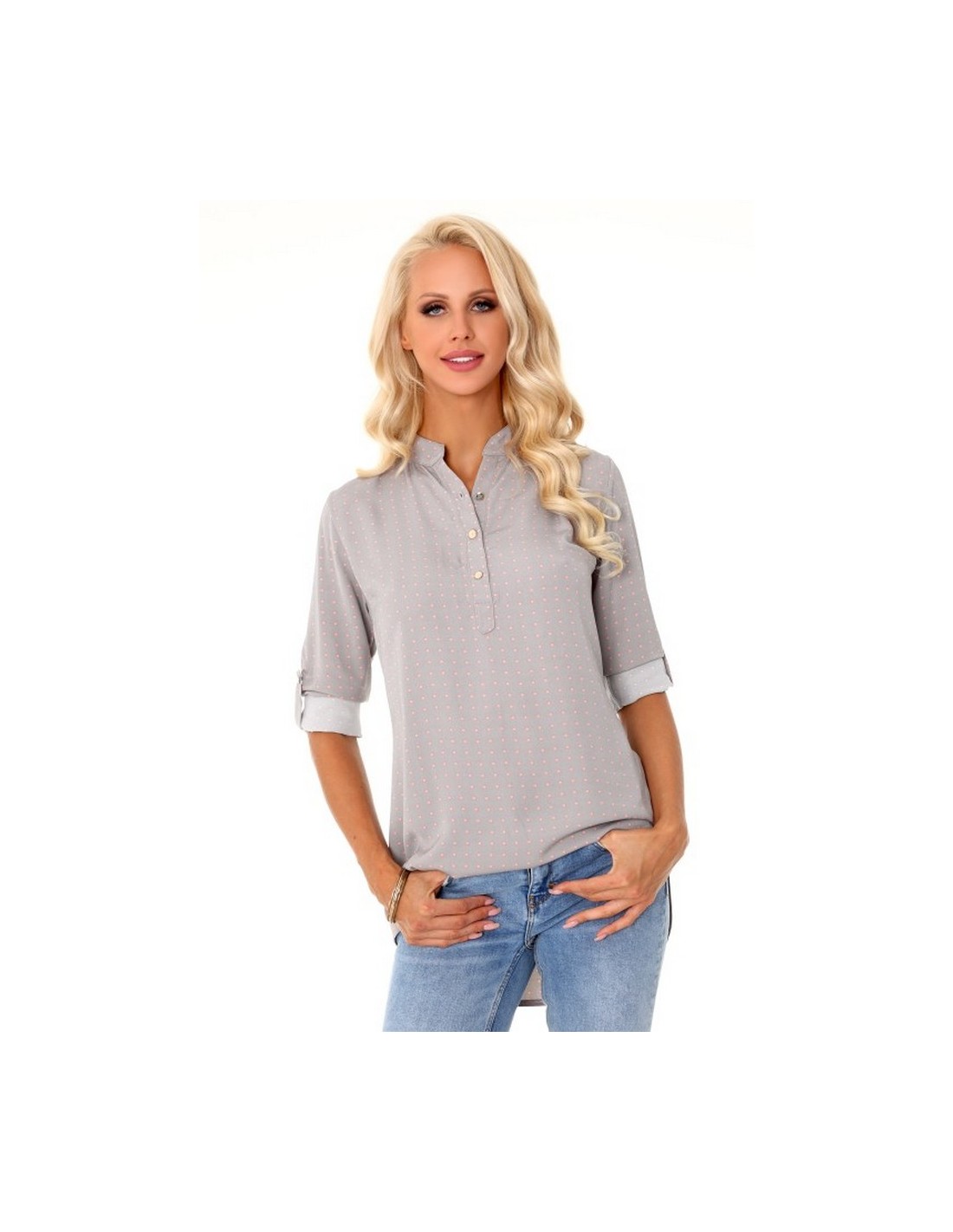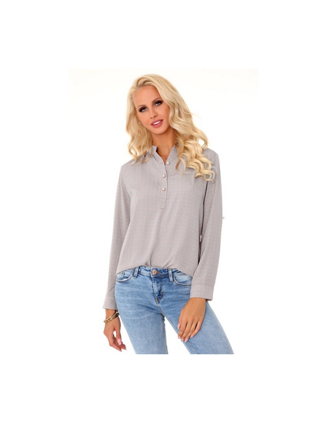 Verinn bluzka damska w groszki długi rękaw szara, Merribel 85295
