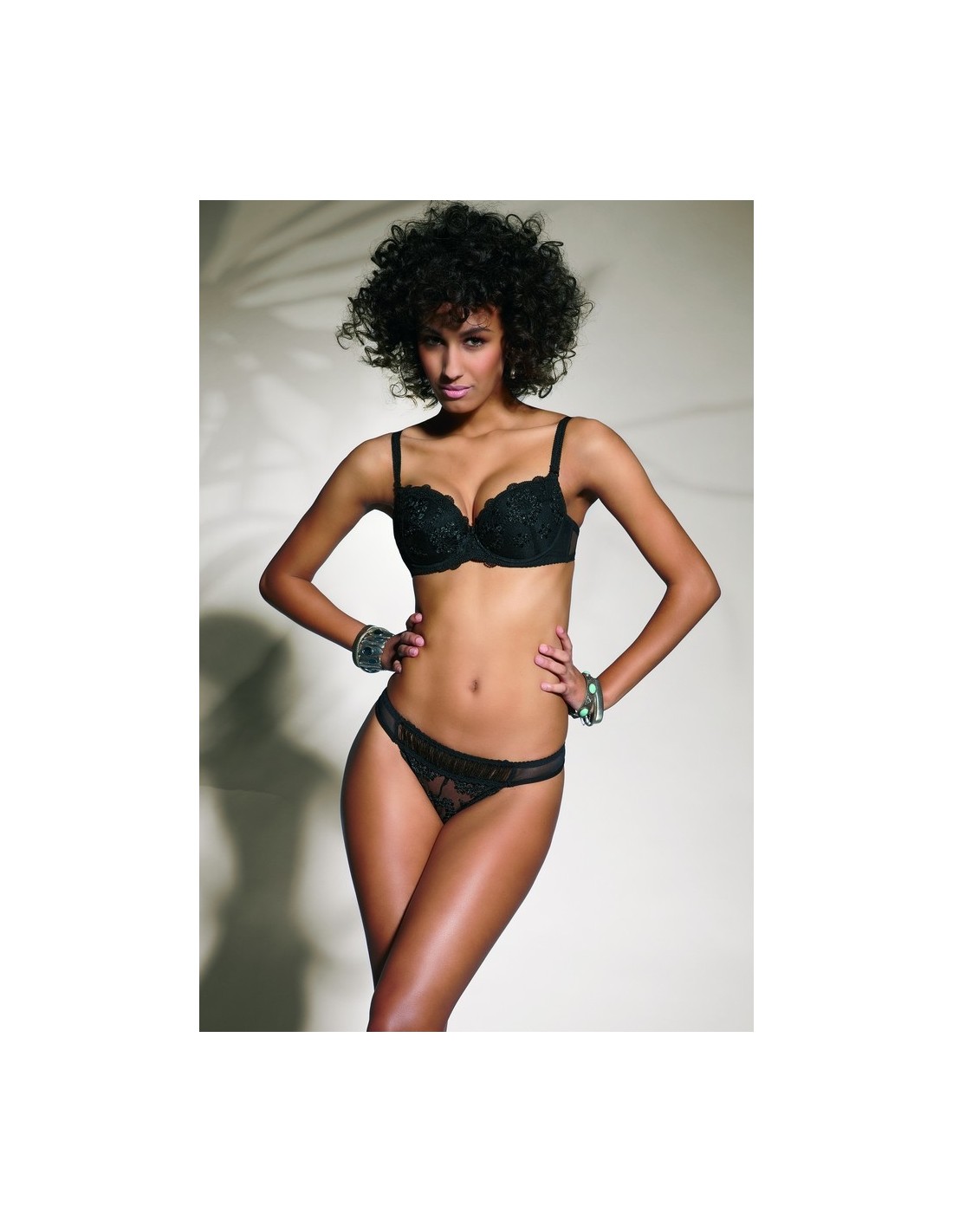 Stringi damskie Krisline Fortuna czarne z delikatną koronką