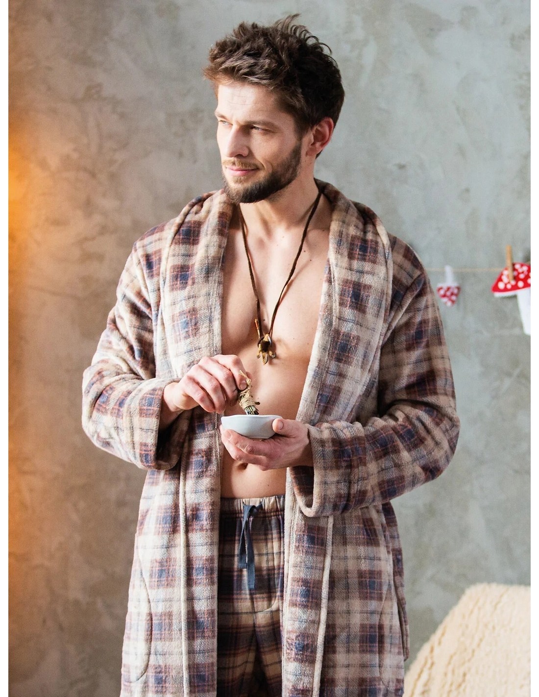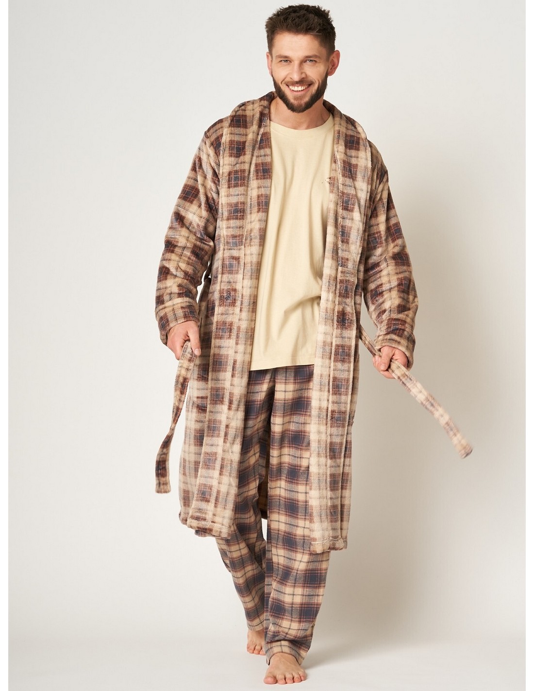 Ciepły męski szlafrok Key MGL 402 to komfortowy dodatek na chłodne wieczory. Wykonany z grubej dzianiny w kratkę, zapewnia wygodę i ciepło. Idealny dla mężczyzn ceniących styl i funkcjonalność.