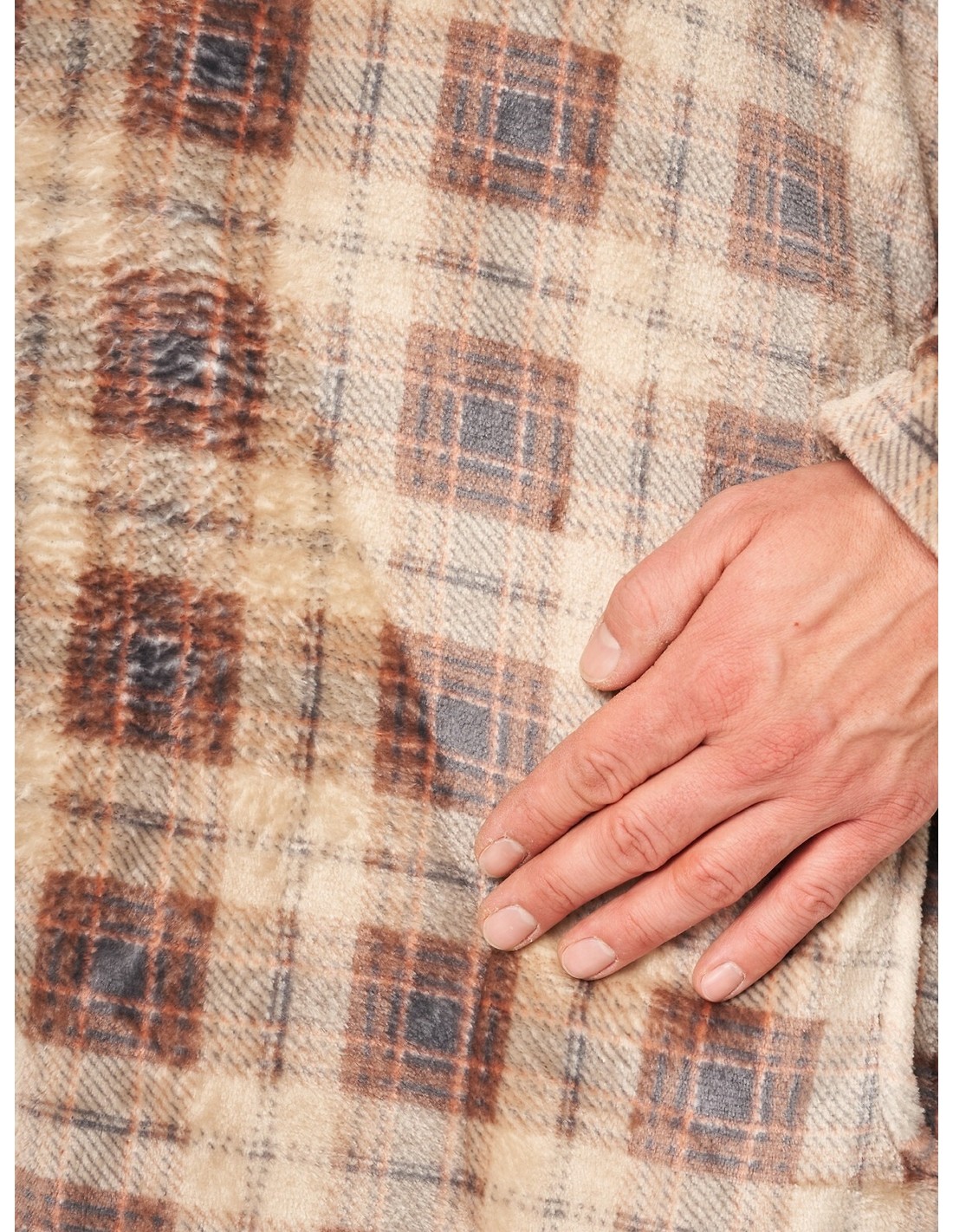 Szlafrok męski Key MGL 402 charakteryzuje się kołnierzem szalowym i eleganckim wzorem w kratkę. Wykonany z grubej dzianiny typu soft, gwarantuje przyjemne ciepło oraz komfort noszenia w chłodne wieczory. Model wiązany w pasie, z praktycznymi kieszeniami na biodrach, świetnie sprawdzi się w domowych warunkach. Dzięki swojej uniwersalnej stylistyce, szlafrok nadaje się zarówno do codziennego użytku, jak i na relaksujące wieczory. To doskonały wybór dla mężczyzn, którzy cenią sobie połączenie wygody i estetyki.